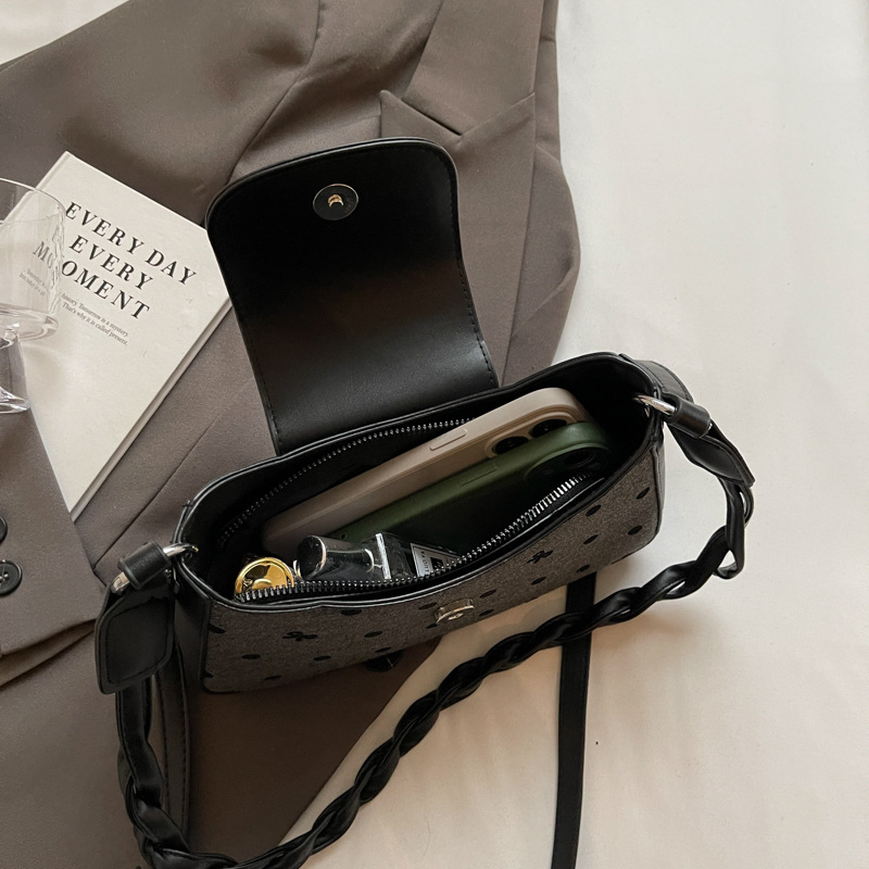 单肩包韩版波点简约质感斜挎包蝴蝶结通勤百搭休闲时尚包包女
