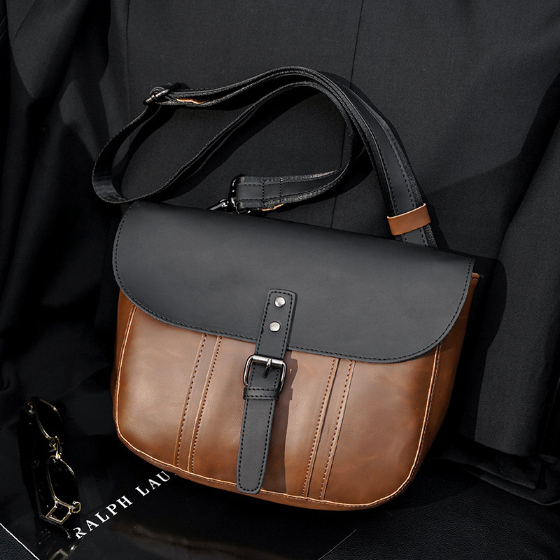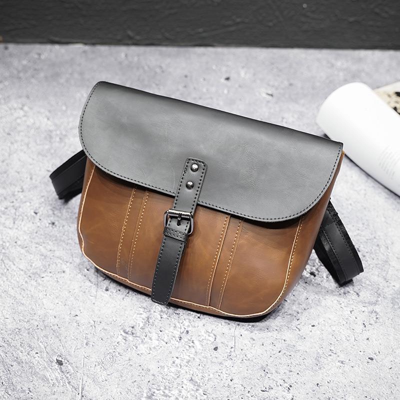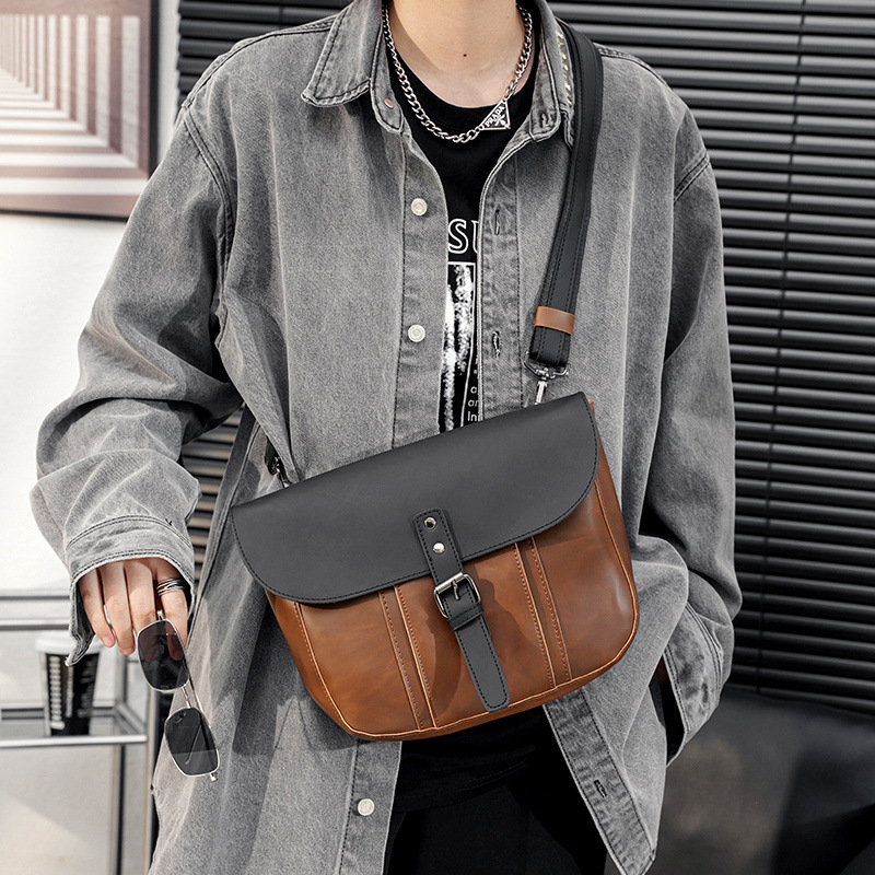 男士单肩包休闲背包运动潮流斜挎包邮差包小包潮牌疯马PU皮男包