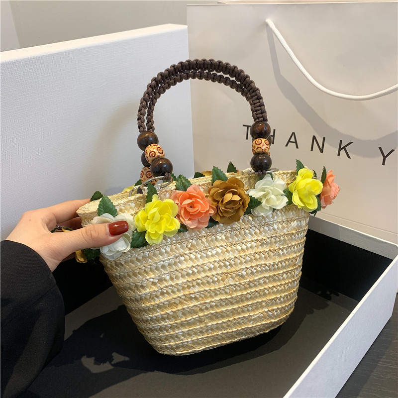 仙女海边度假沙滩草编包包女夏新款鲜花手提篮子包编织手拎包