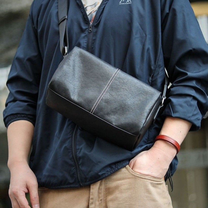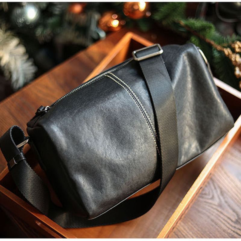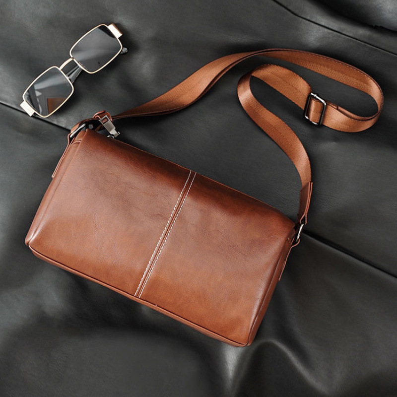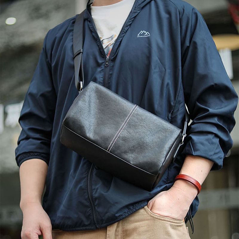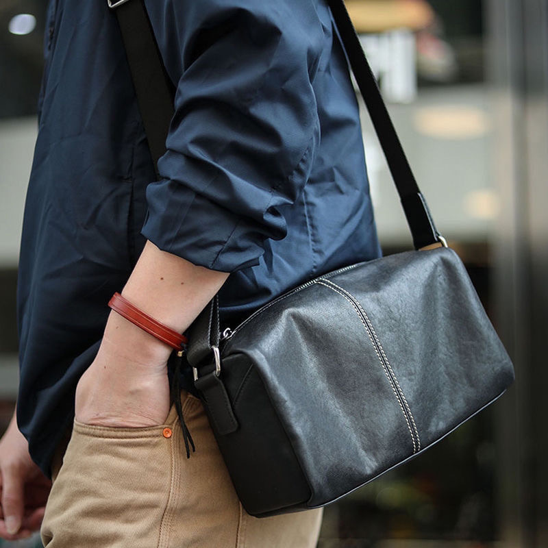 男士通勤单肩斜挎包植鞣软皮小包简约男包高级枕头男士商务包