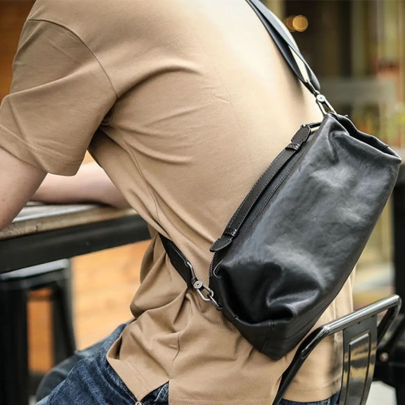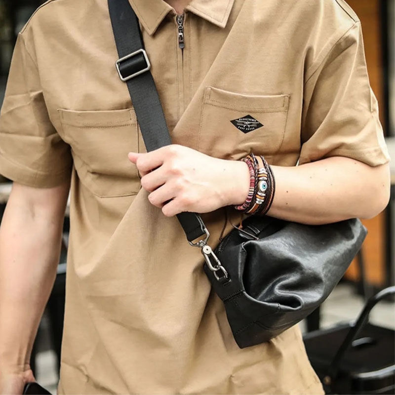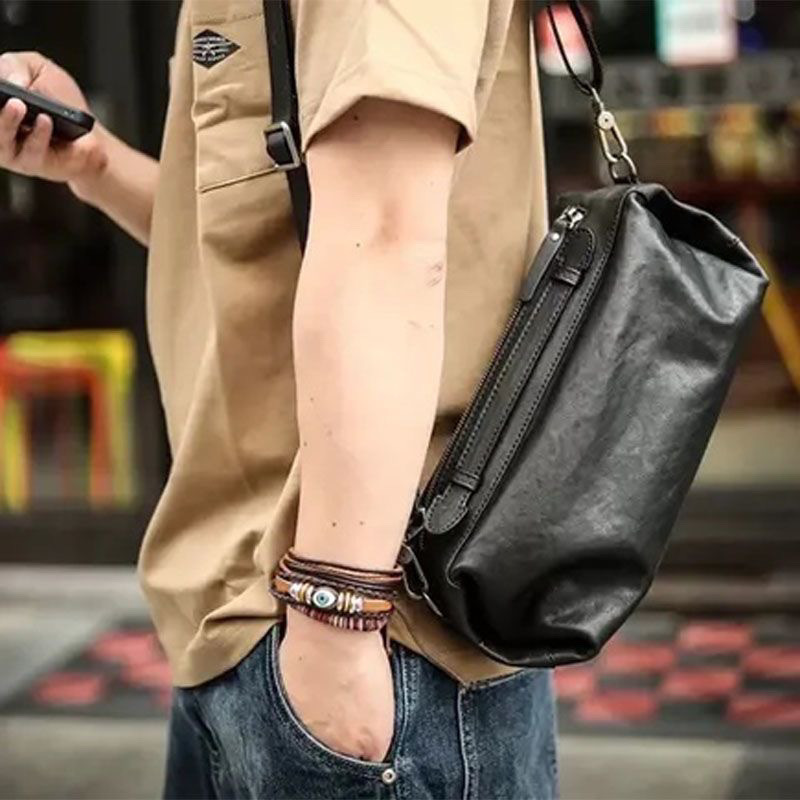 新款皮包男士通勤休闲单肩斜挎包头层皮包胸包软大容量手拿包