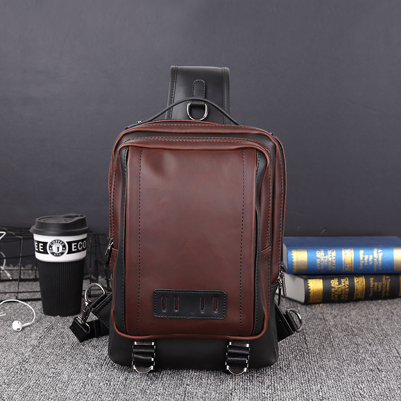 商务出差男士多功能单肩包户外大容量斜挎包欧美复古潮流学生胸包