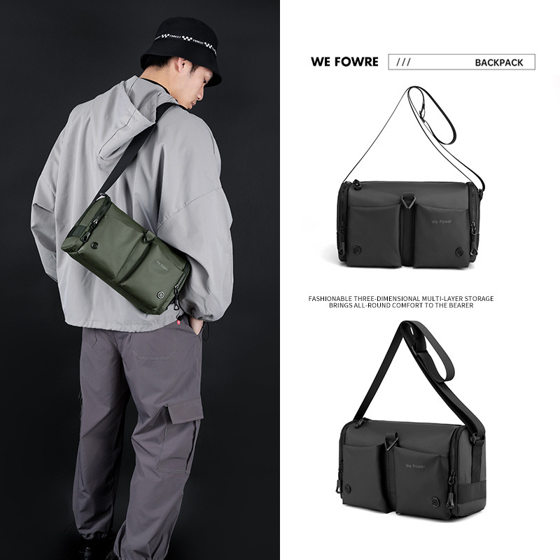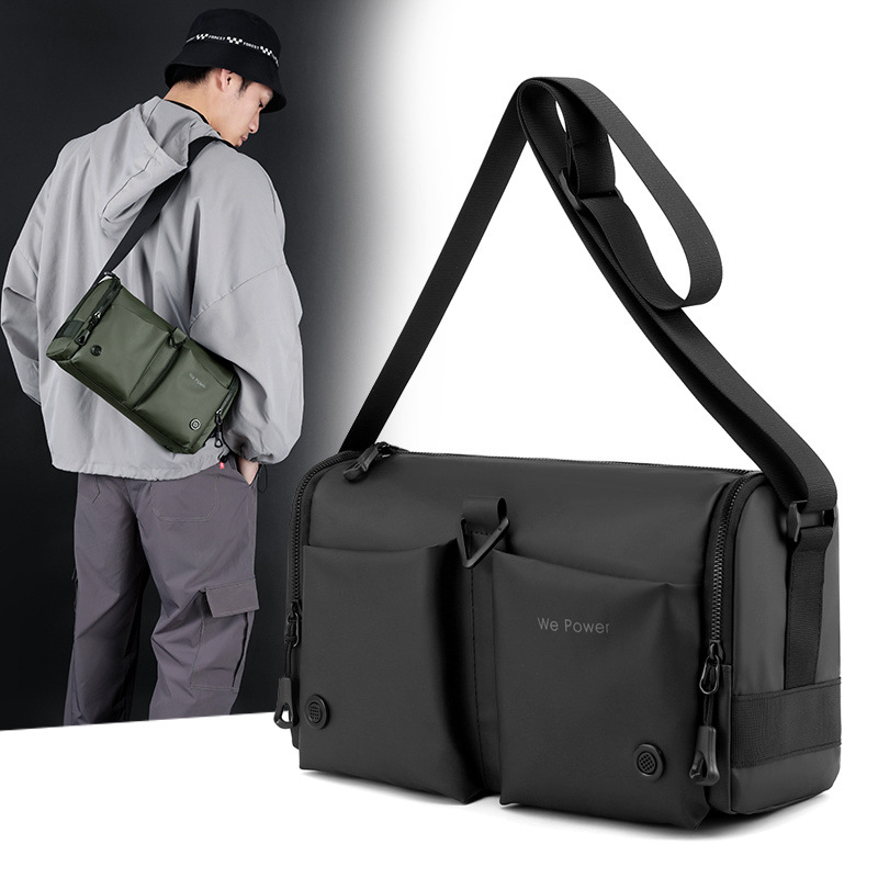 新款潮男单肩斜跨包机能休闲挎包男女工装斜跨包大容量旅行挎包