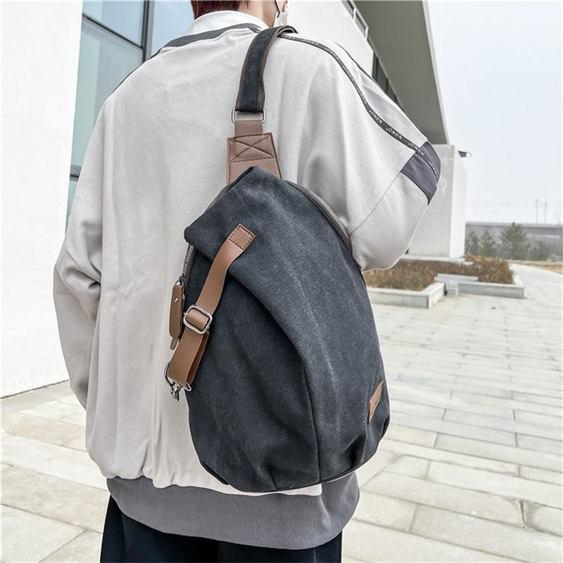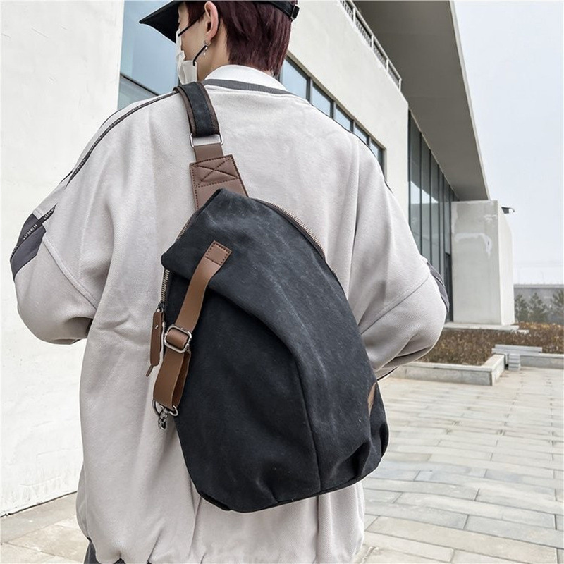 帆布胸包男士斜挎包大容量潮单肩包后背包女潮牌韩版小跨包复古风
