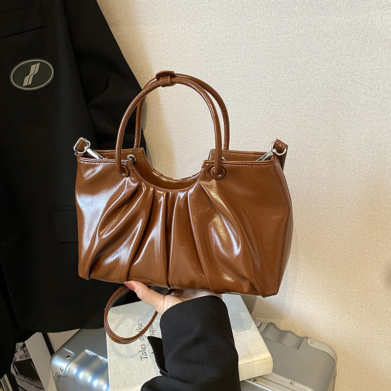 复古美拉德小包包女新款褶皱手提云朵包秋冬时尚油蜡皮斜挎包
