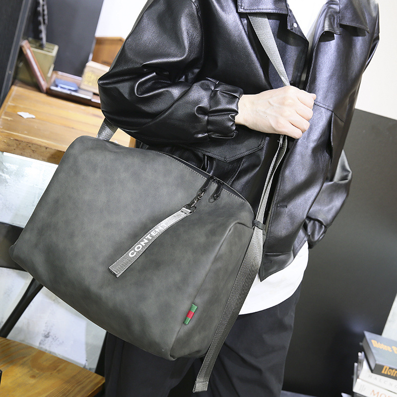 原创男士通勤单肩斜挎包软皮小包简约男包学生拉链大容量手机包