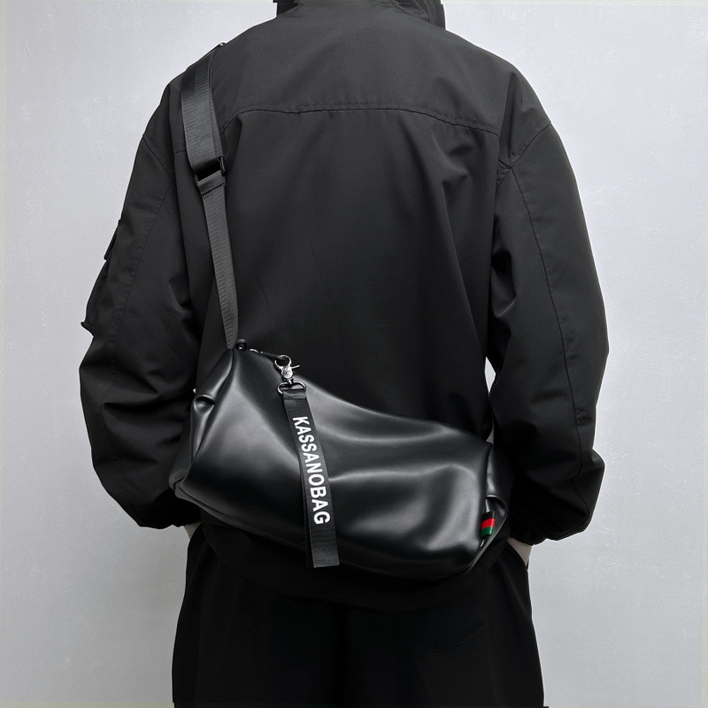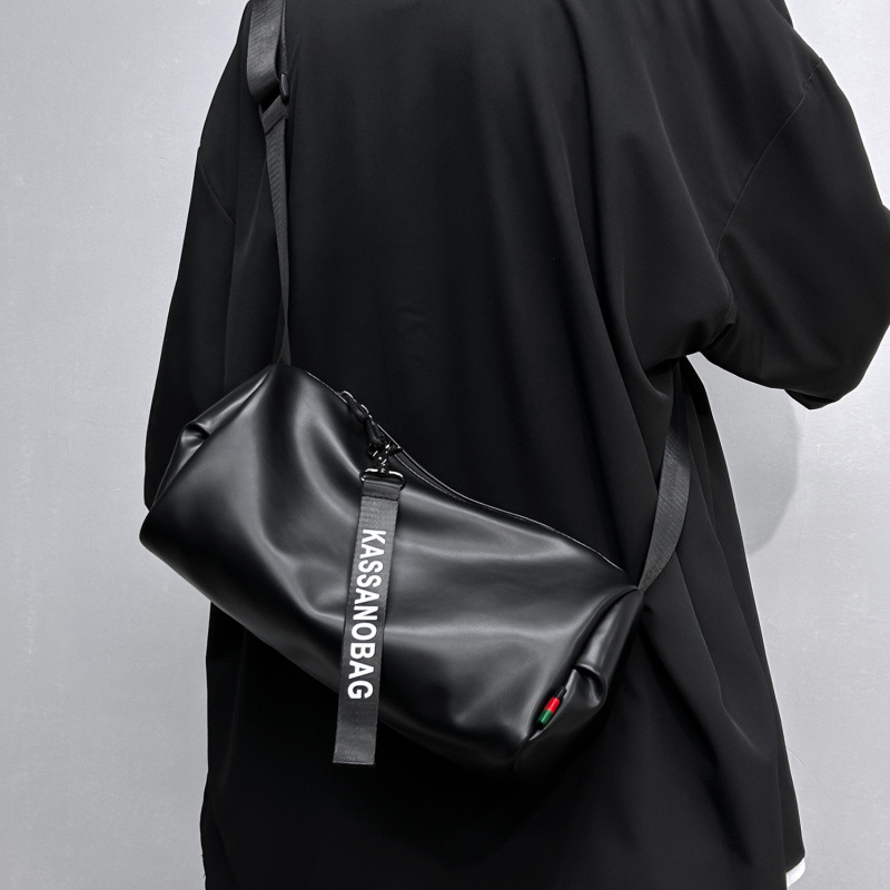 新款包包男士斜挎包简约休闲单肩包男潮牌百搭通勤包圆筒挎包