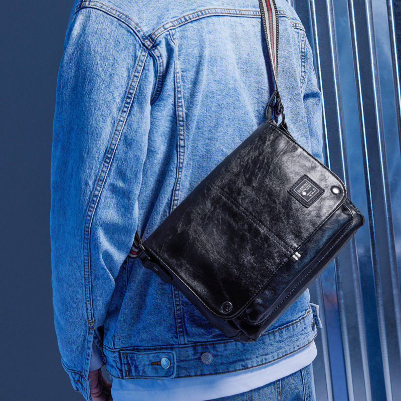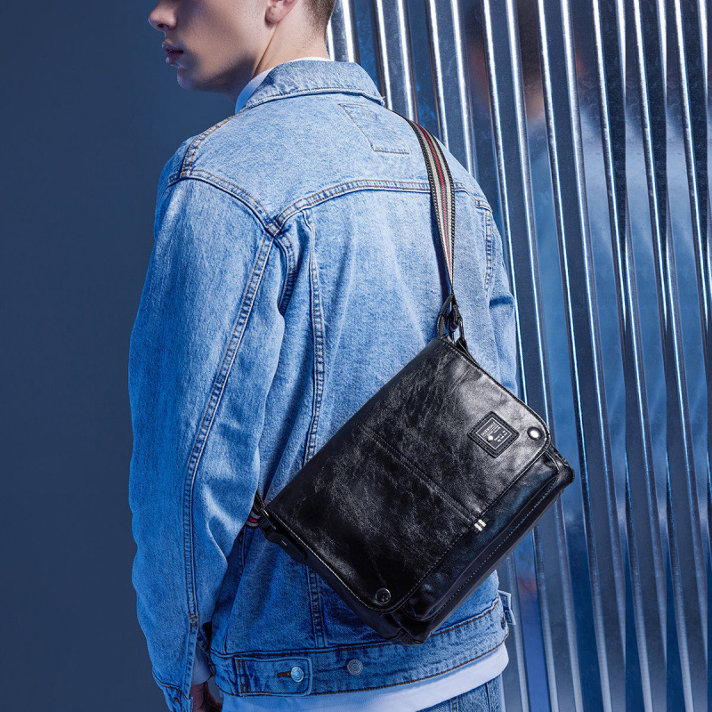 马克华菲斜挎包男士新款时尚单肩包皮包大容量包简约斜挎包