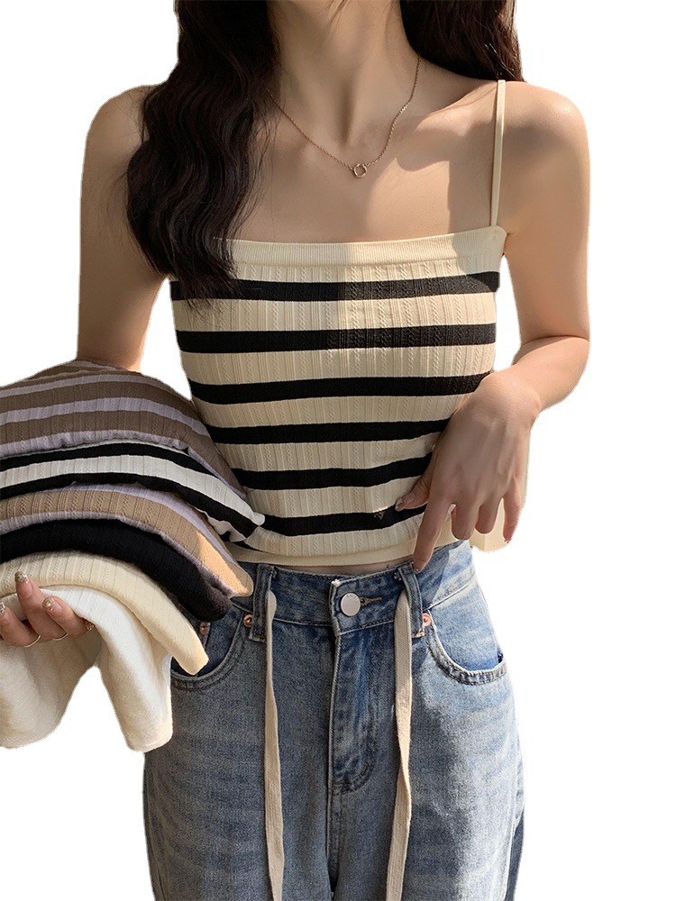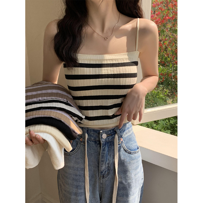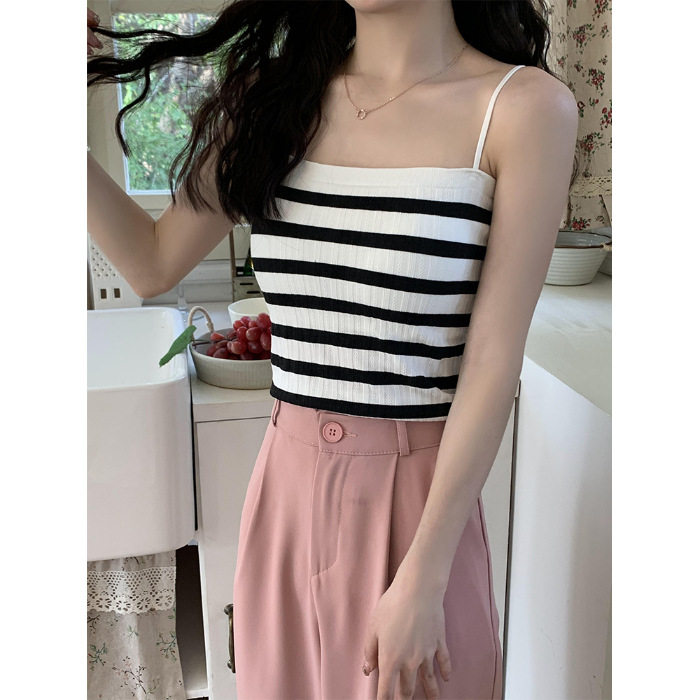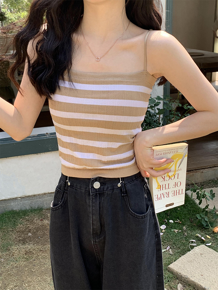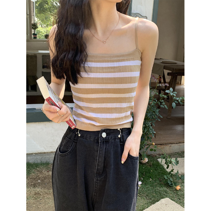 小吊带背心女条纹内搭针织衫夏设计感小众外穿潮ins法式打底上衣