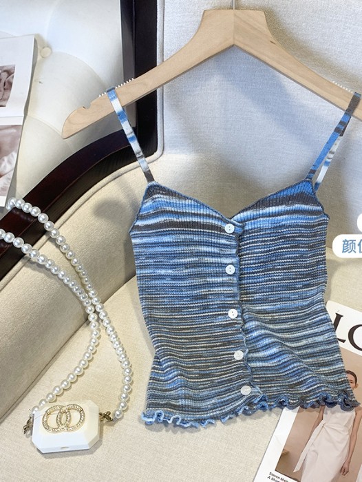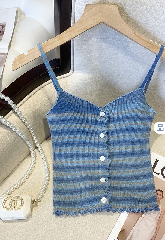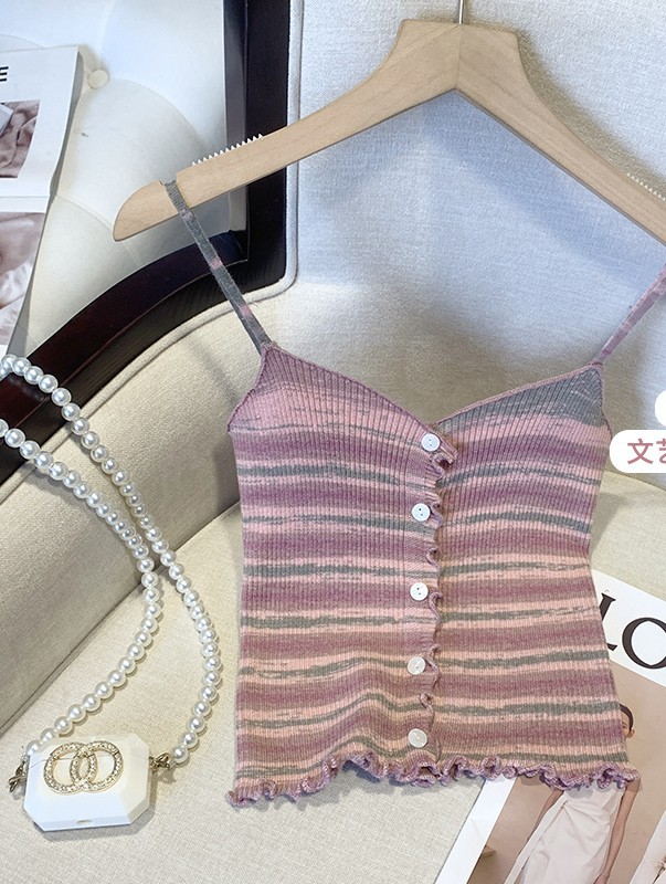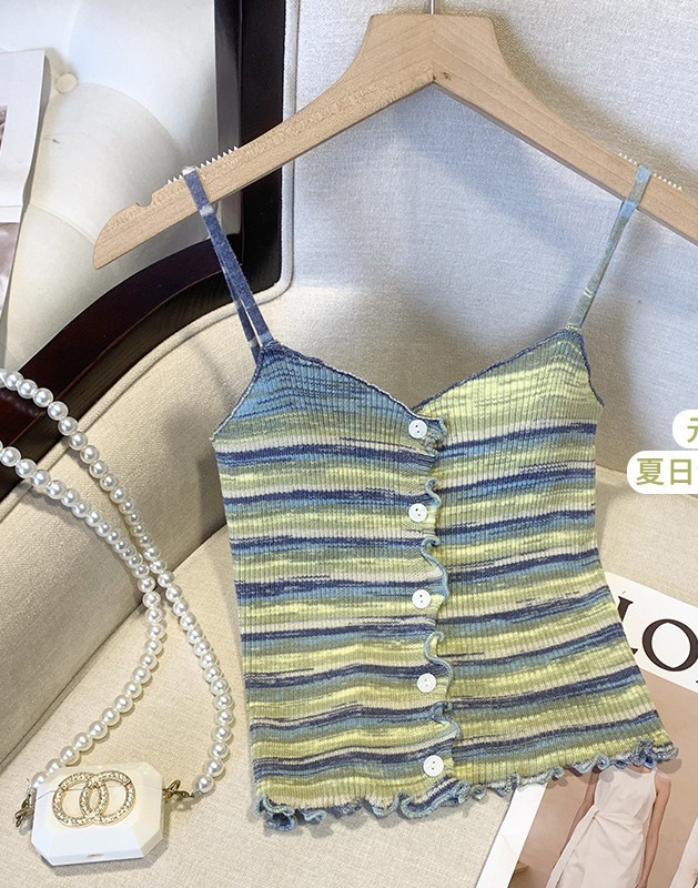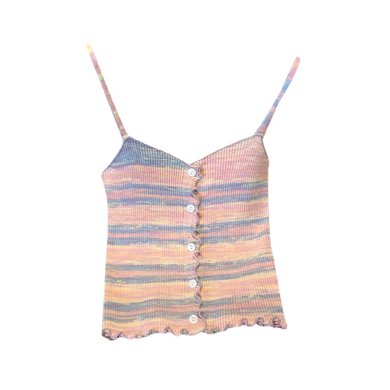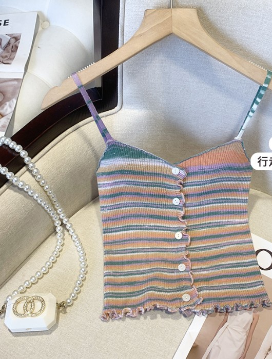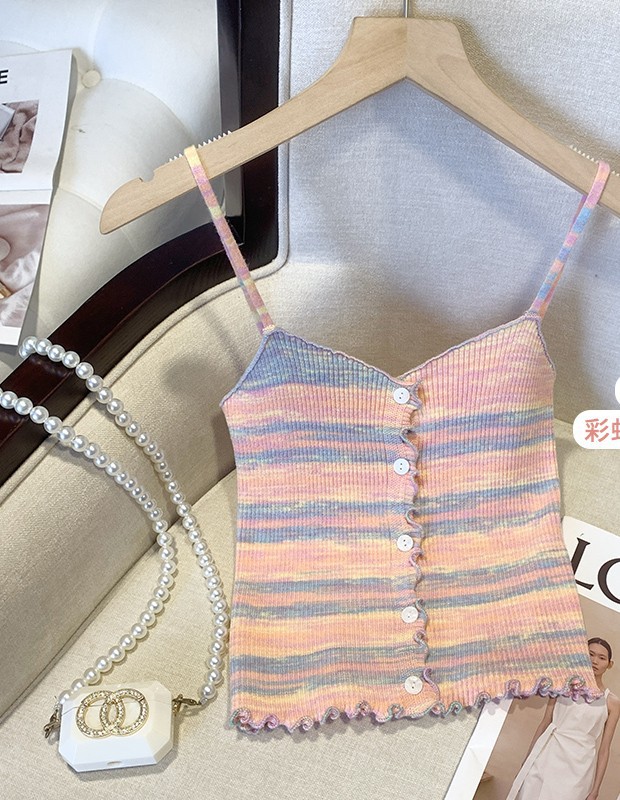 夏季新款彩虹条纹吊带背心外搭薄款针织开衫抹胸纯欲裹胸上衣