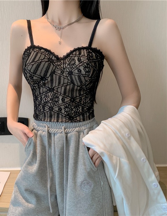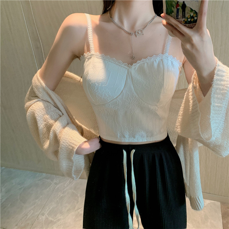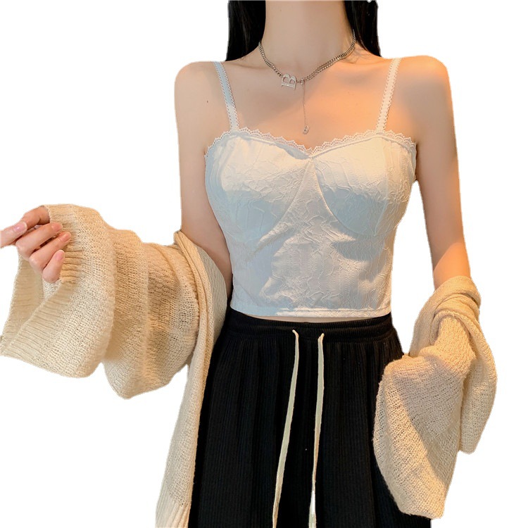 外贸跨境批发亚马逊速卖通纯欲风性感外穿蕾丝内搭带胸垫背心吊带