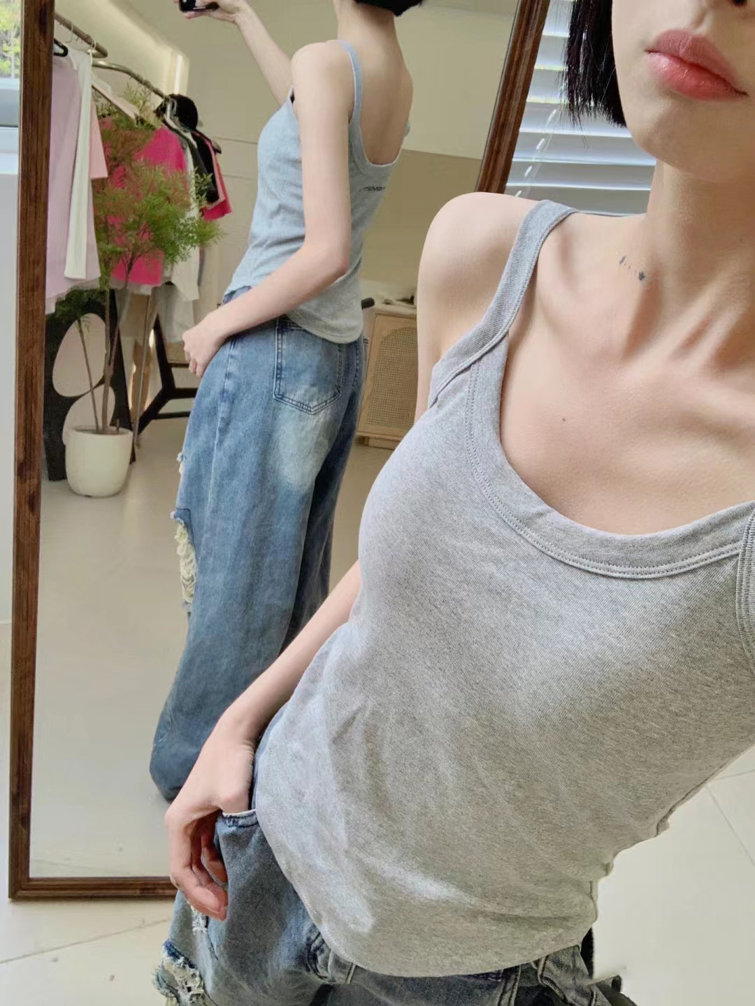 新款上衣性感吊带U背纯色带胸垫免文胸显瘦背心女棉质打底衣