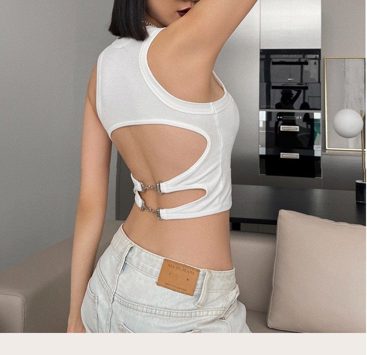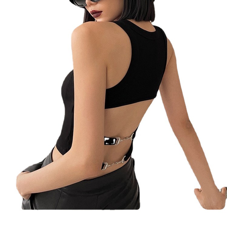 辣妹螺纹棉背心式运动性感镂空后背固定杯修身内搭外穿露背裹胸潮