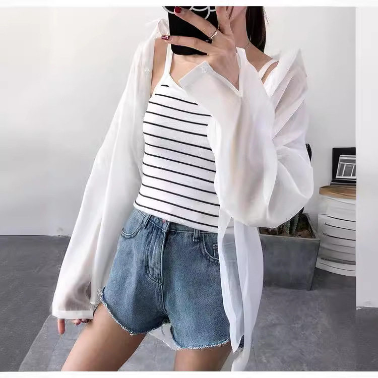 黑白条纹吊带女装无袖时尚上衣内穿外搭新款性感修身ins潮流吊带