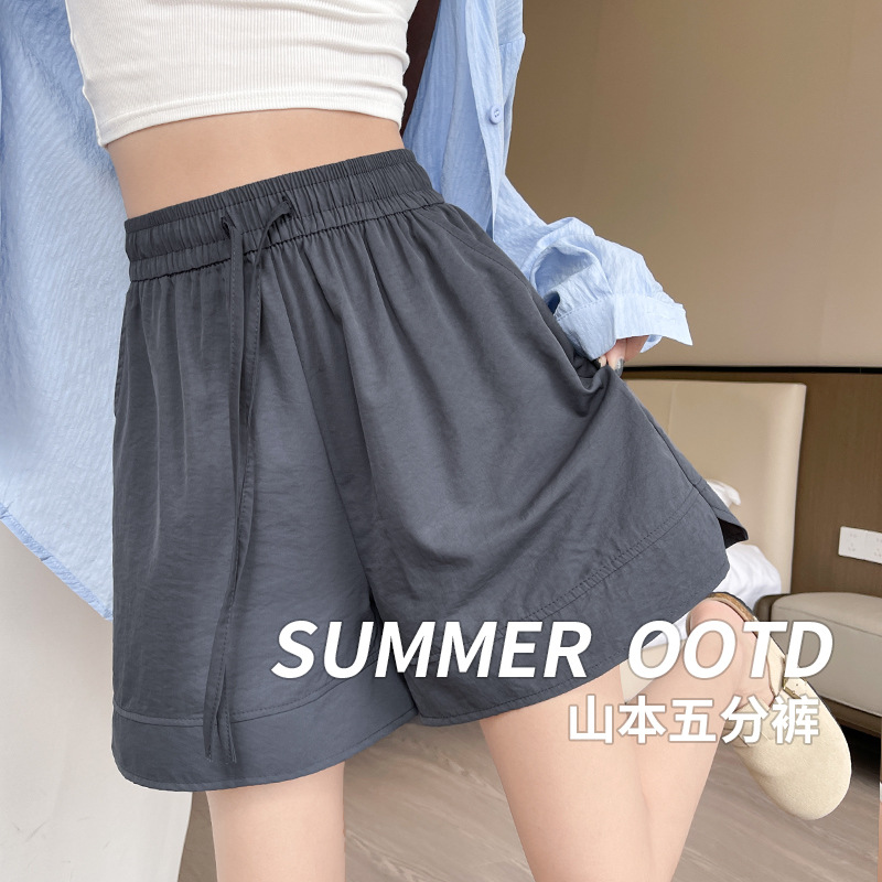 灰色山本短裤女春夏薄款外穿高腰宽松阔腿小个子冰丝运动五分中裤
