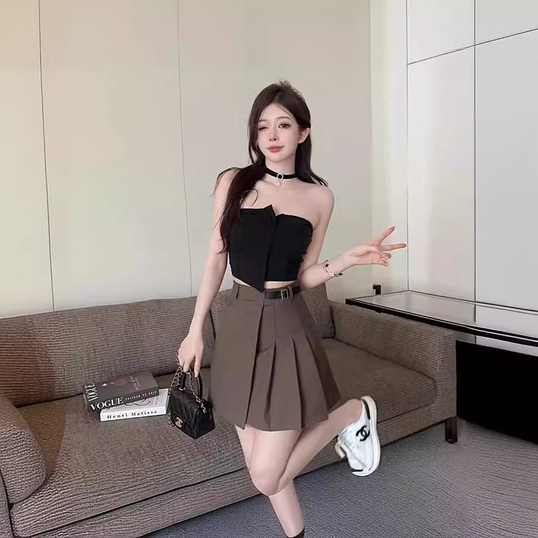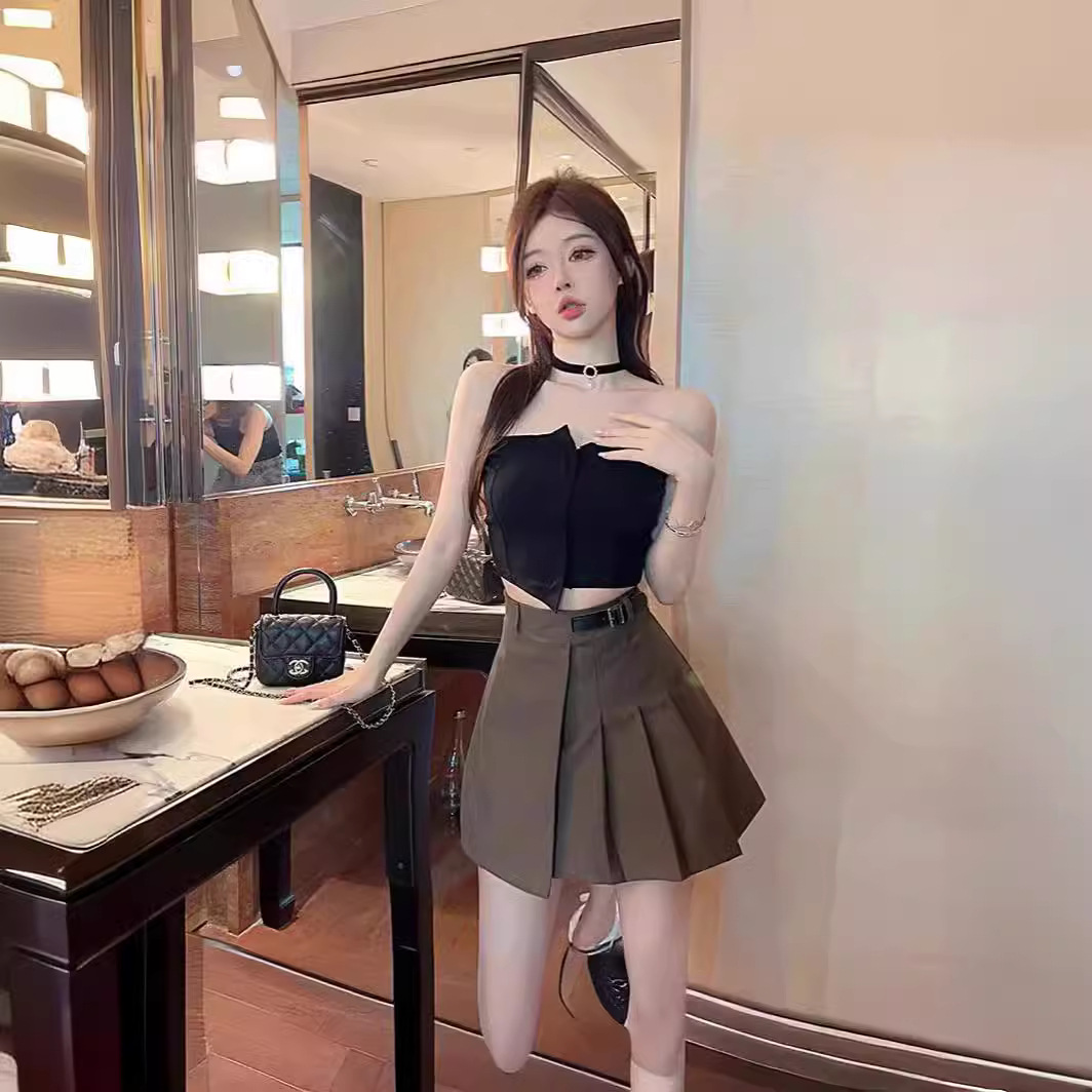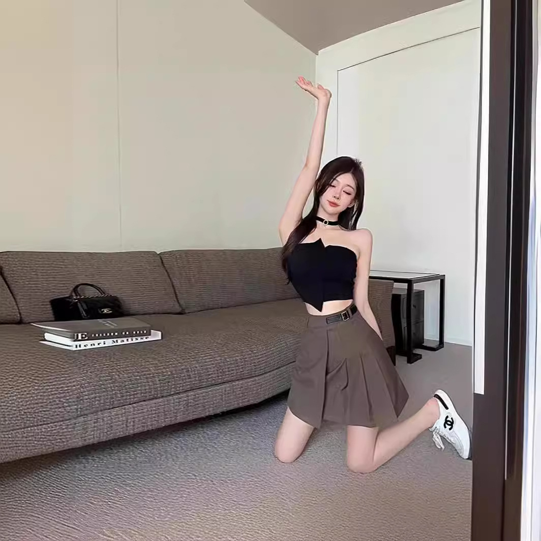 辣妹露背修身黑色抹胸女春夏气质内搭上衣高腰时尚性感纯欲风背心