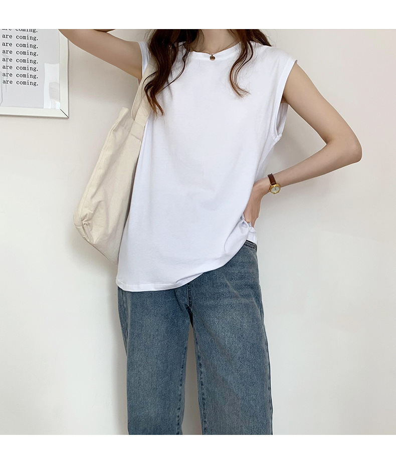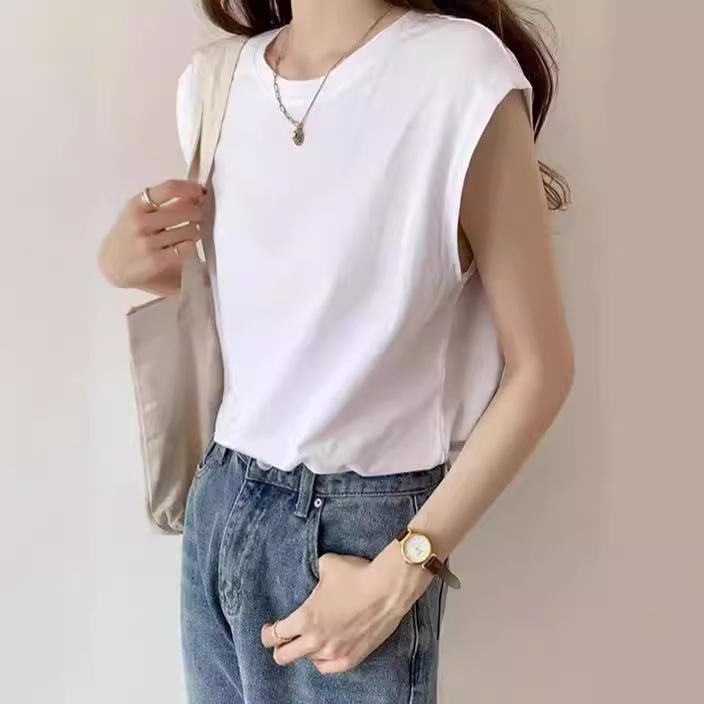 男女同款学生背心夏季港风圆领宽松休闲无袖情侣款T恤纯色简约风