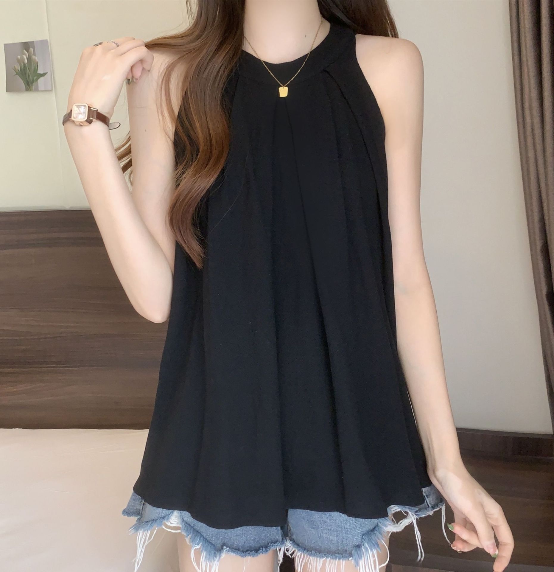 多巴胺背心大码挂脖吊带夏季中长款背心女外穿显瘦胖mm遮肚上衣潮