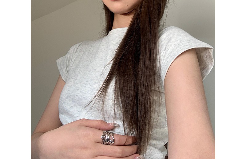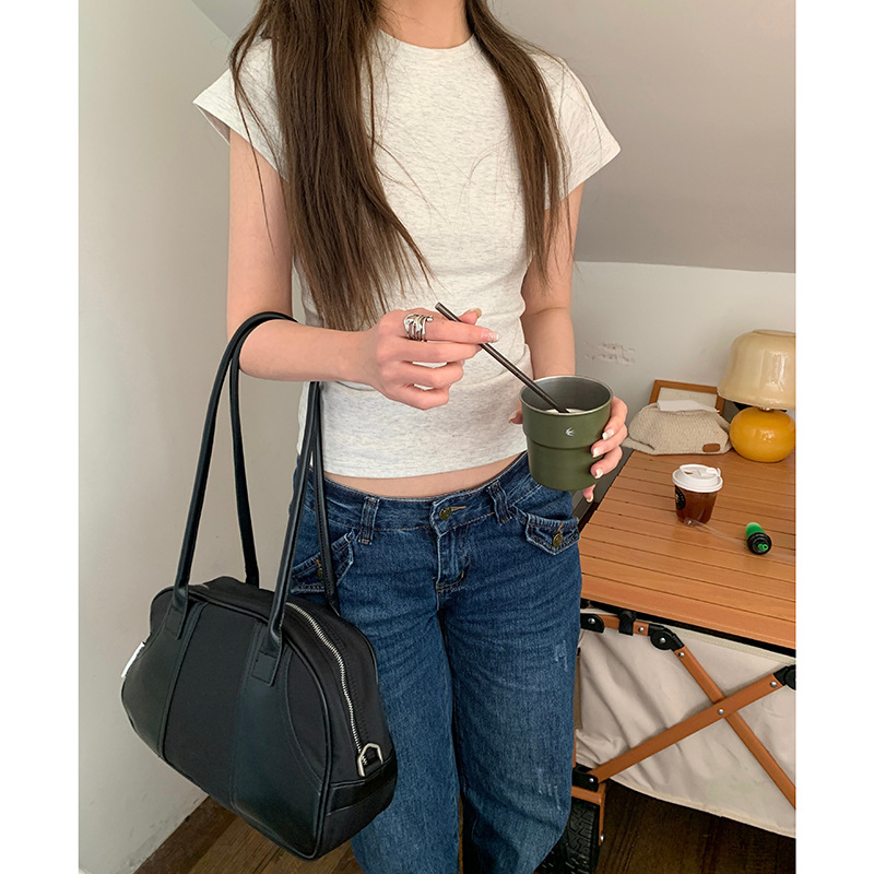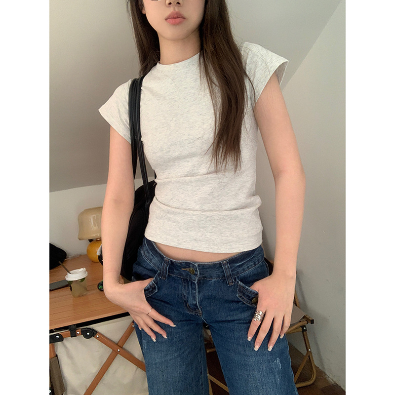正肩短袖圆领t恤女夏季新款修身显瘦设计感小众内搭洋气休闲上衣