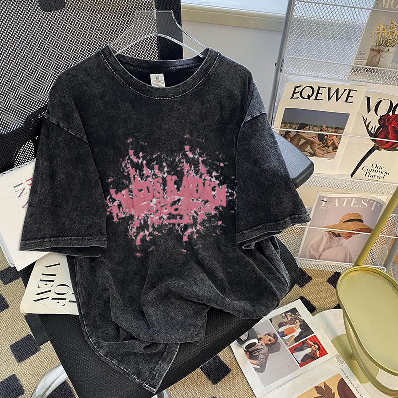 上衣宽松美式t恤不撞款正肩港味复古chic新款夏季女装