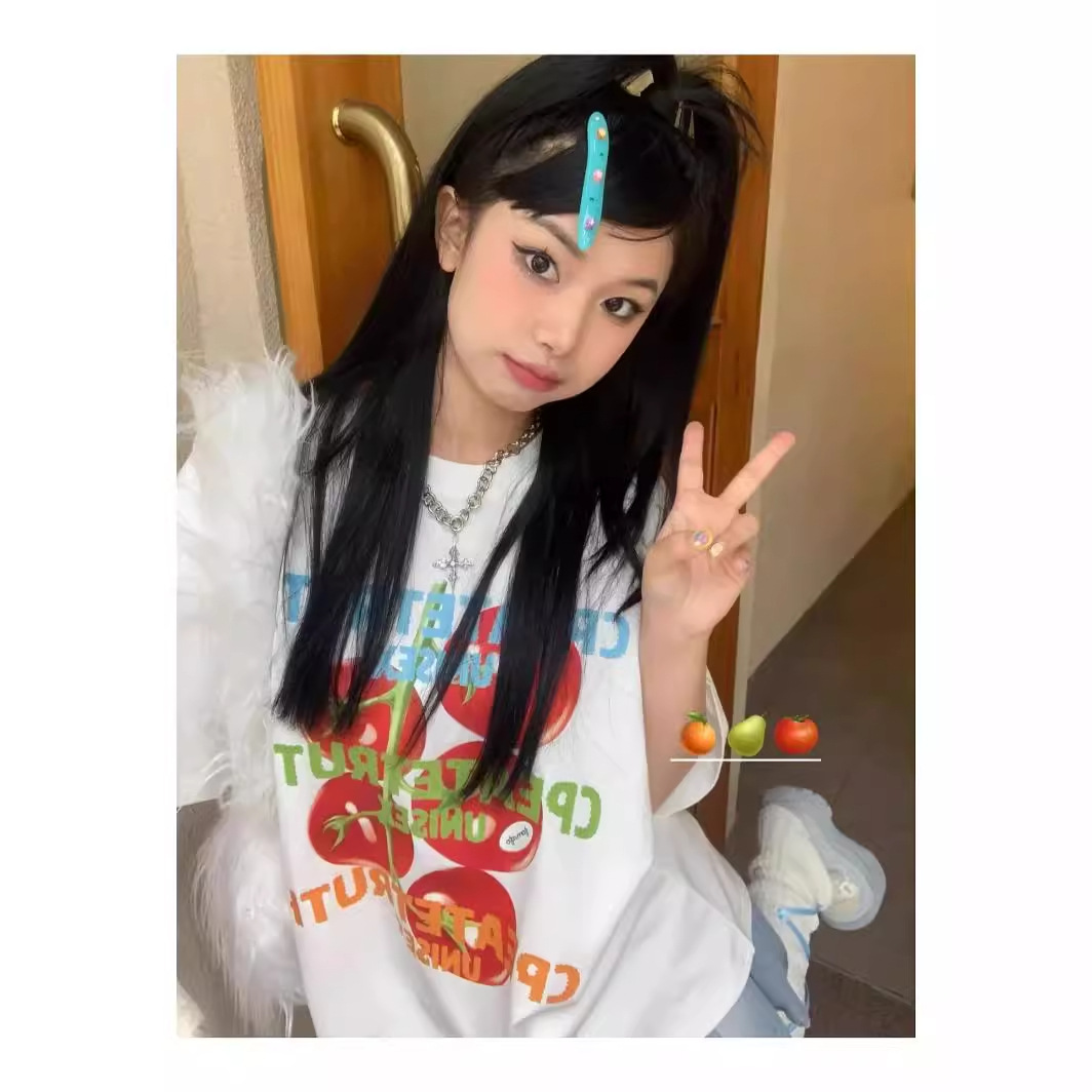 美式复古短袖t恤男女春夏季番茄印花白色半袖体恤纯棉情侣上衣潮