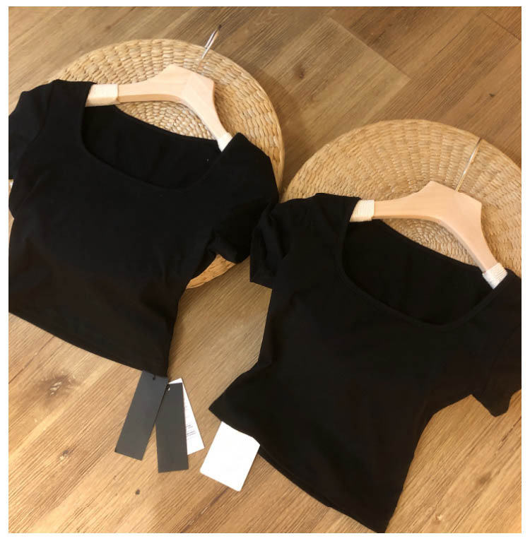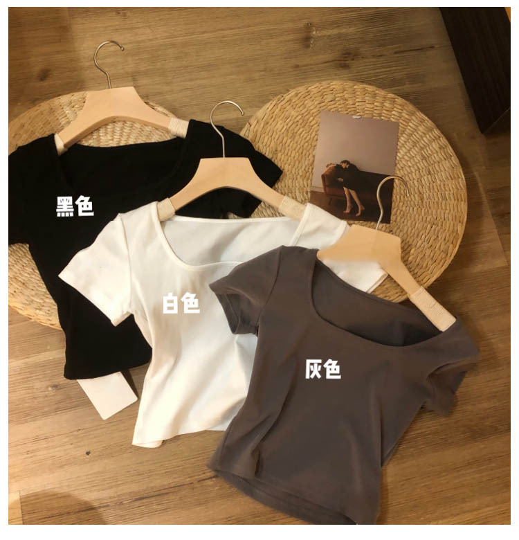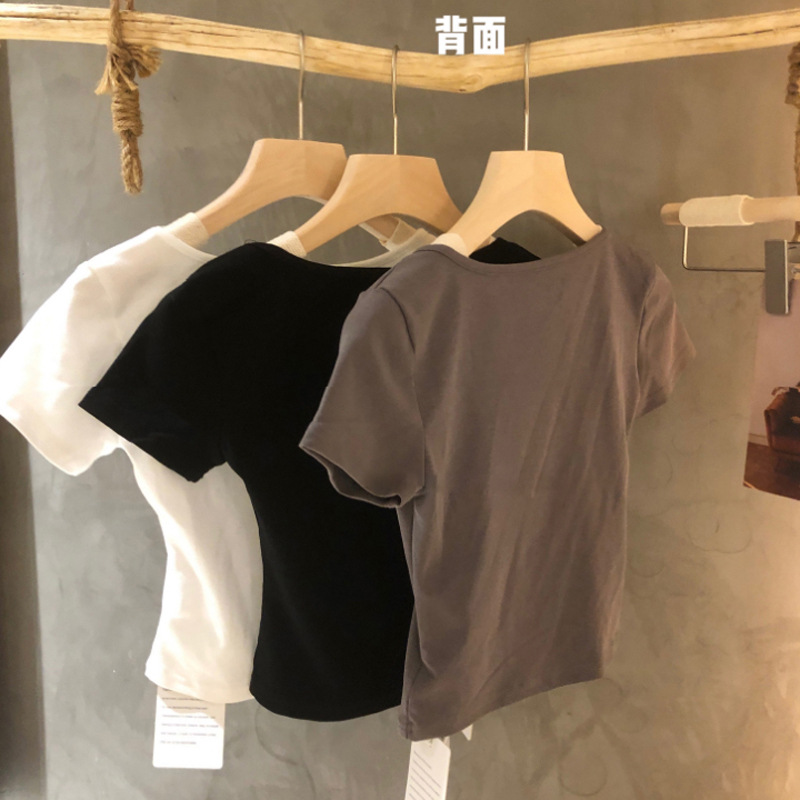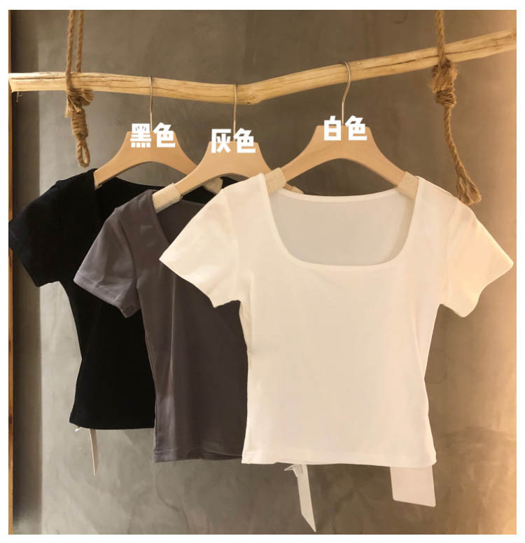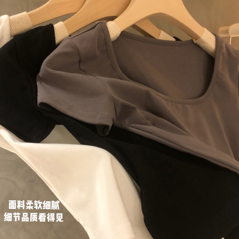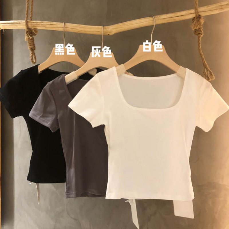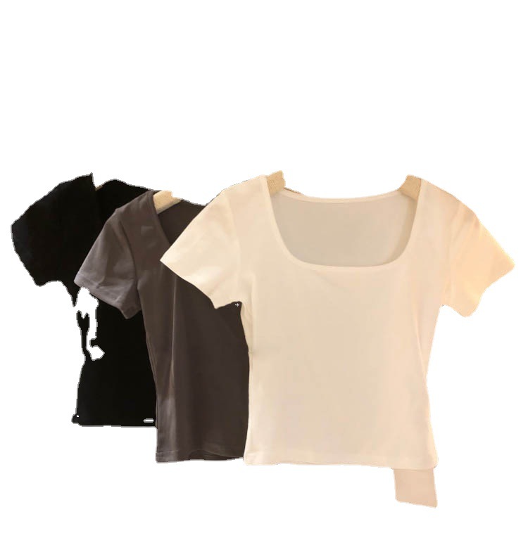 棉方领正肩t恤女短袖夏季年新款修身显瘦低领打底衫上衣女潮