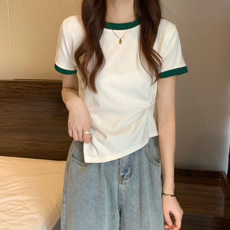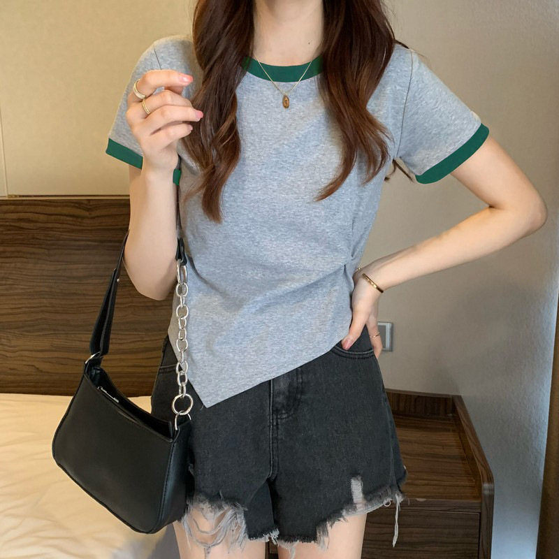 年新款辣妹纯欲修身显瘦夏季不规则上衣设计感小众女短袖T恤