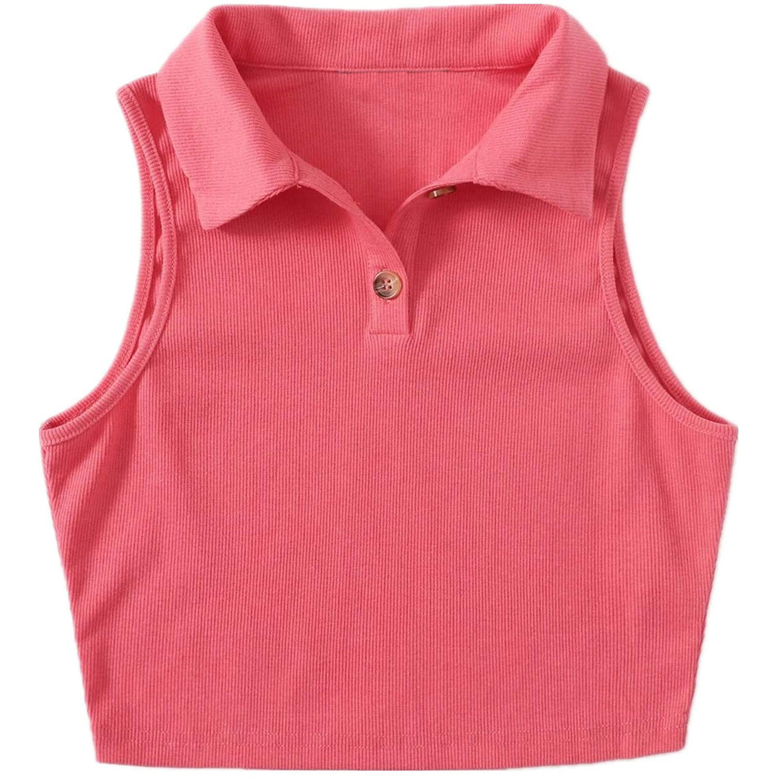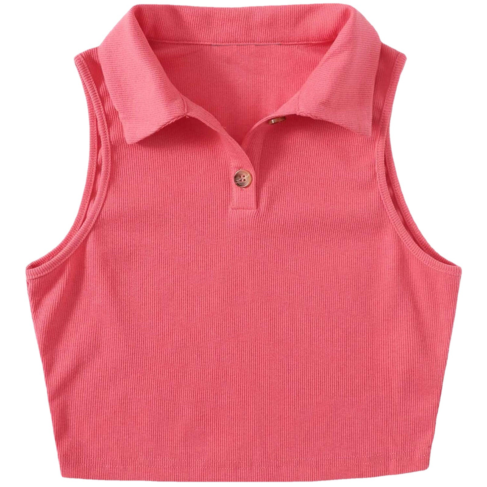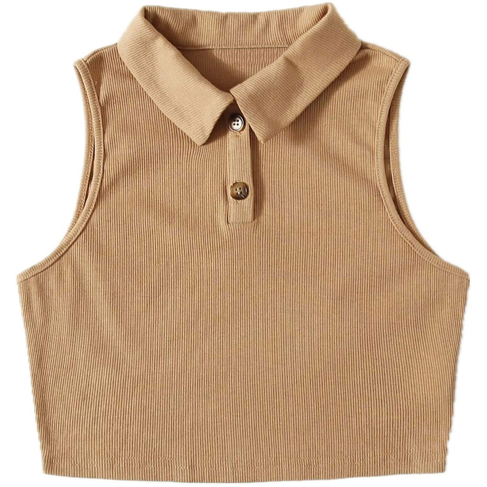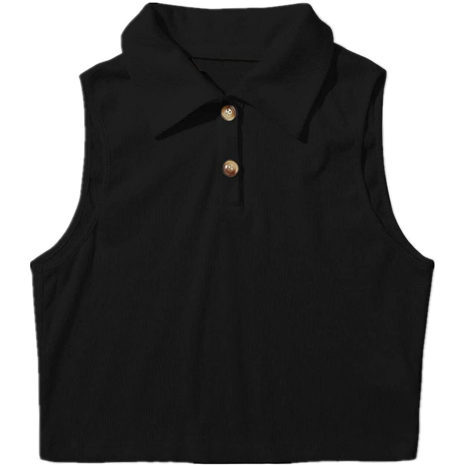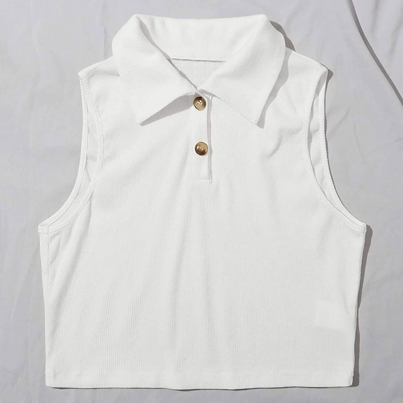 速卖通亚马逊夏季跨境新款短款纽扣背心女翻领无袖螺口上衣女