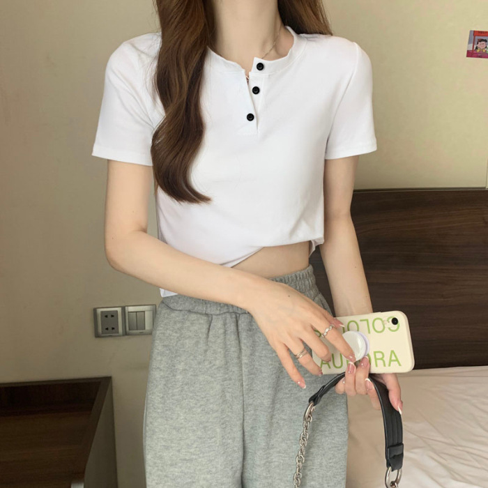 辣妹t恤女夏年棉质新款韩版修身显瘦短款短袖纯色学生上衣潮