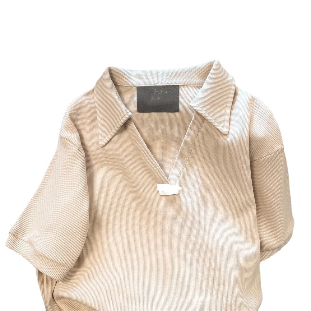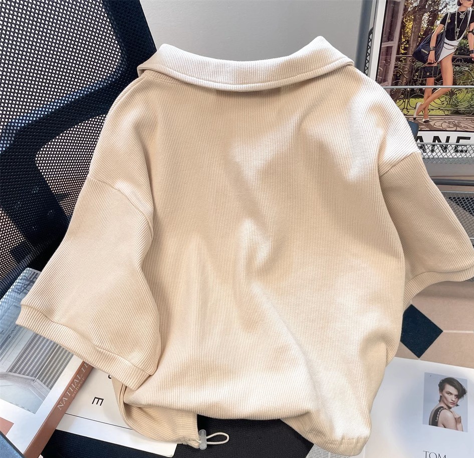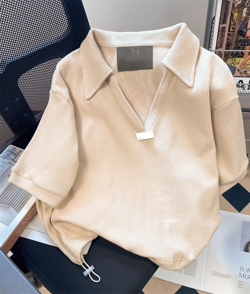 坑条短袖t恤女夏季新款女装韩版宽松显瘦Polo领大码上衣女ins