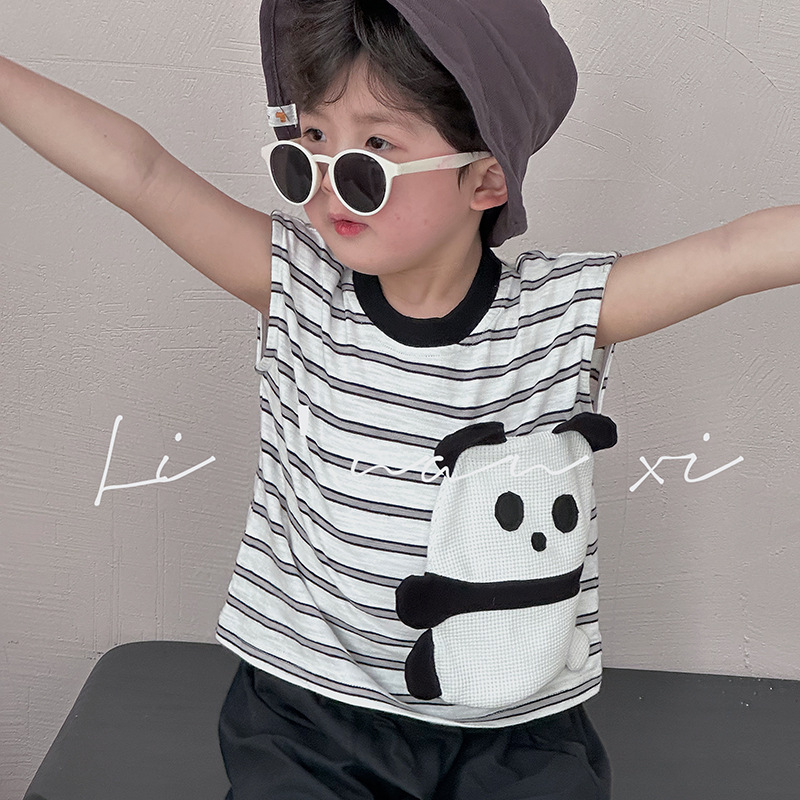 24夏新款男女童针织熊猫无袖T恤3-8岁宝宝立体玩偶凉爽朱蒂棉背心