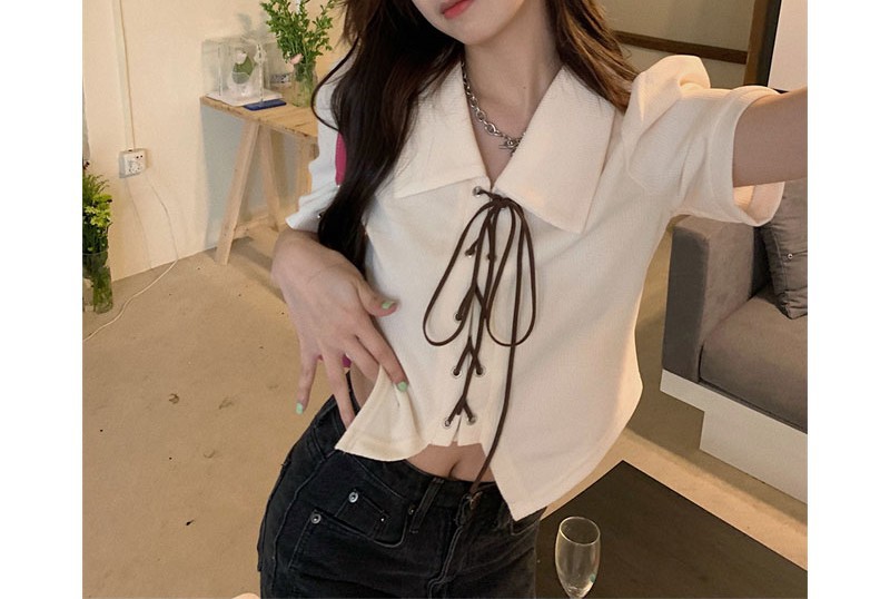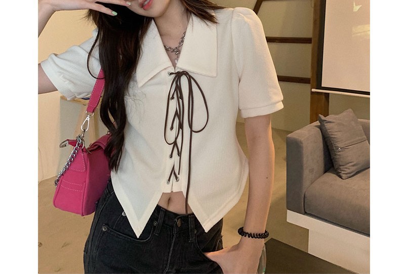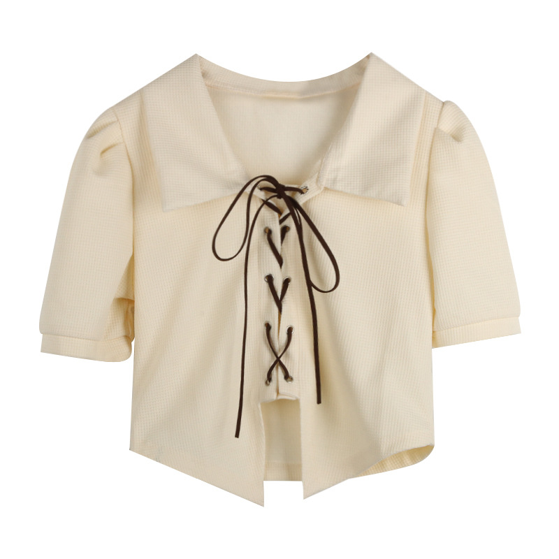 设计感绑带式上衣短袖Polo领t恤女夏季小众别致短款正肩外穿上衣