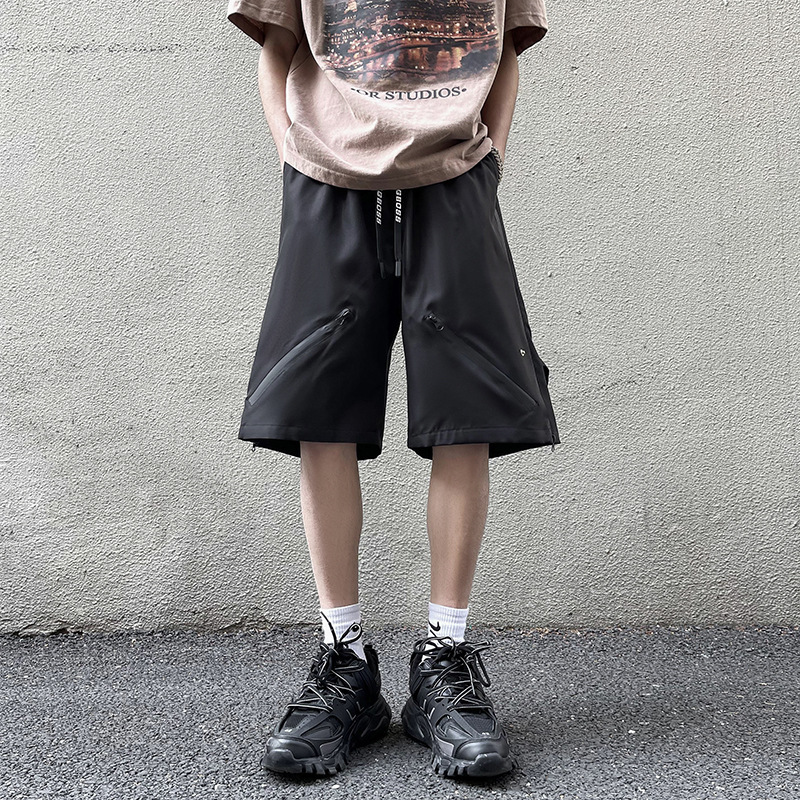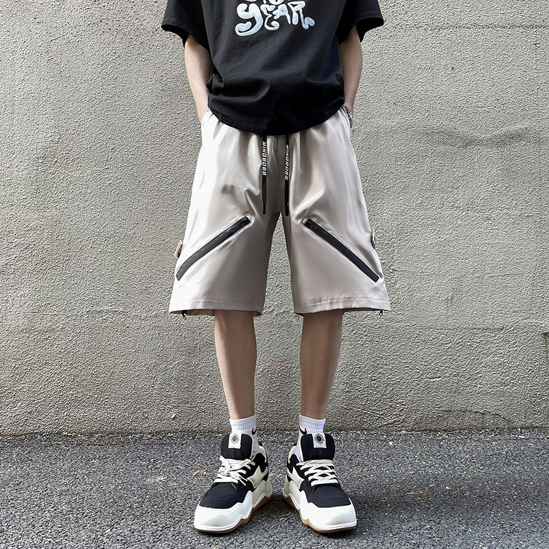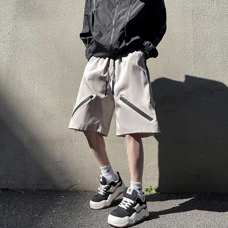 美式拉链冲锋短裤男夏季宽松痞帅休闲裤bf潮牌机能风工装五分裤子
