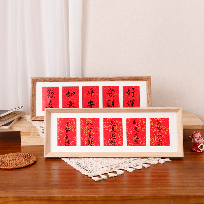 新中式字画横款相框摆台客厅玄关dly毛笔字书法空白卡纸装裱摆件