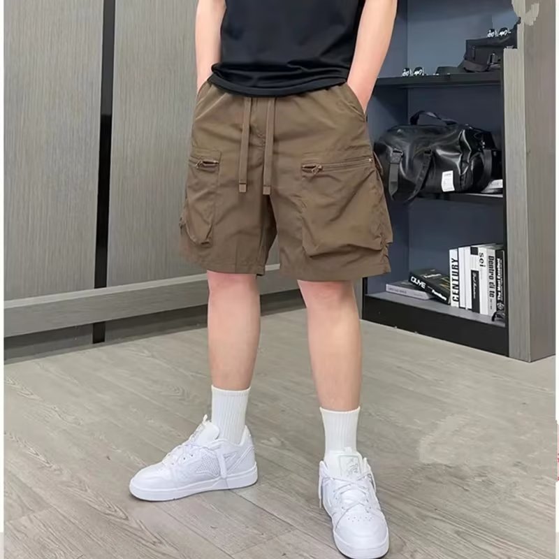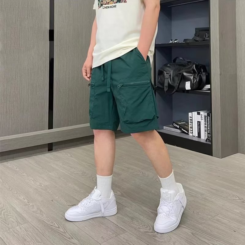 速干夏季多口袋薄款纯色简约宽松工装短裤男士潮牌休闲五分运动裤