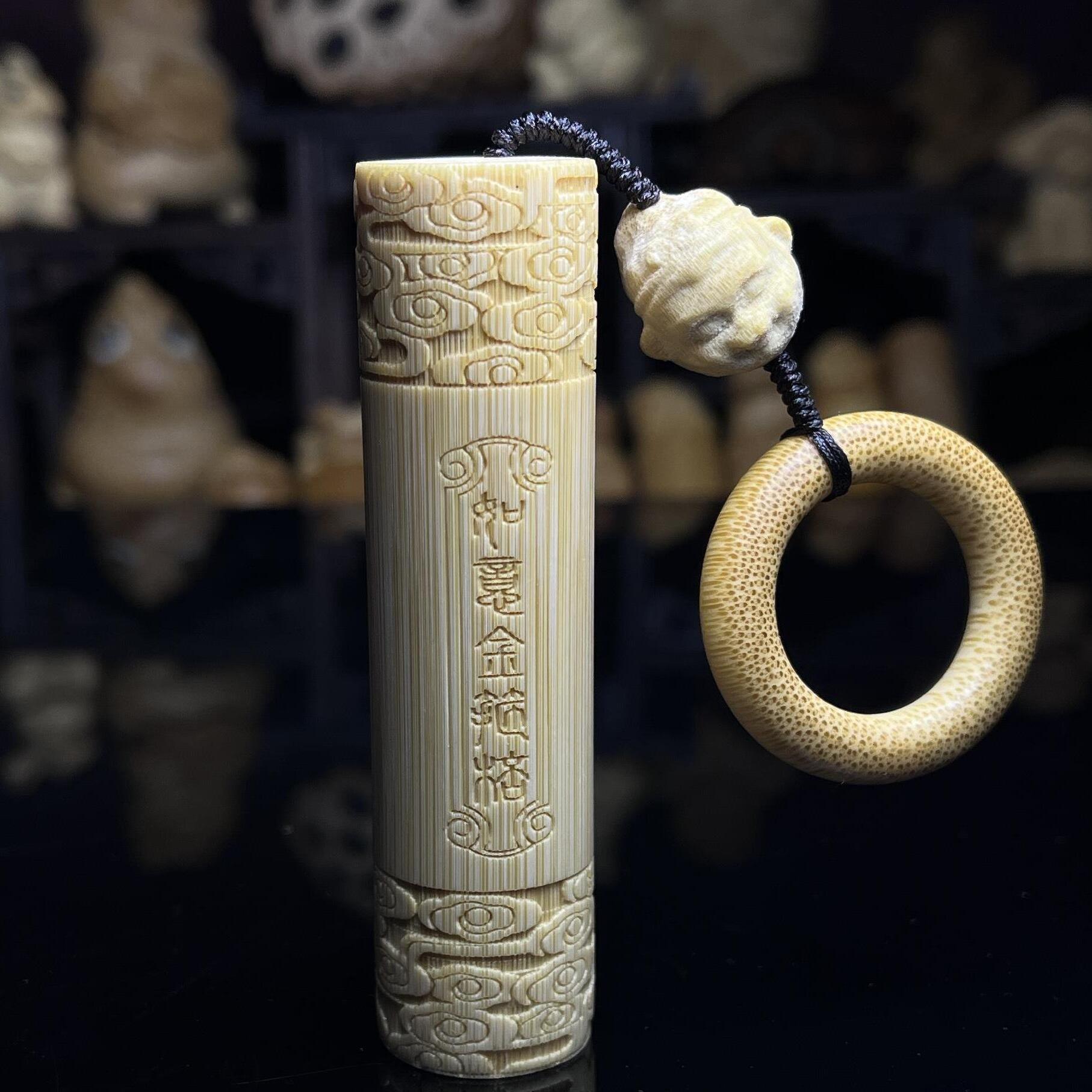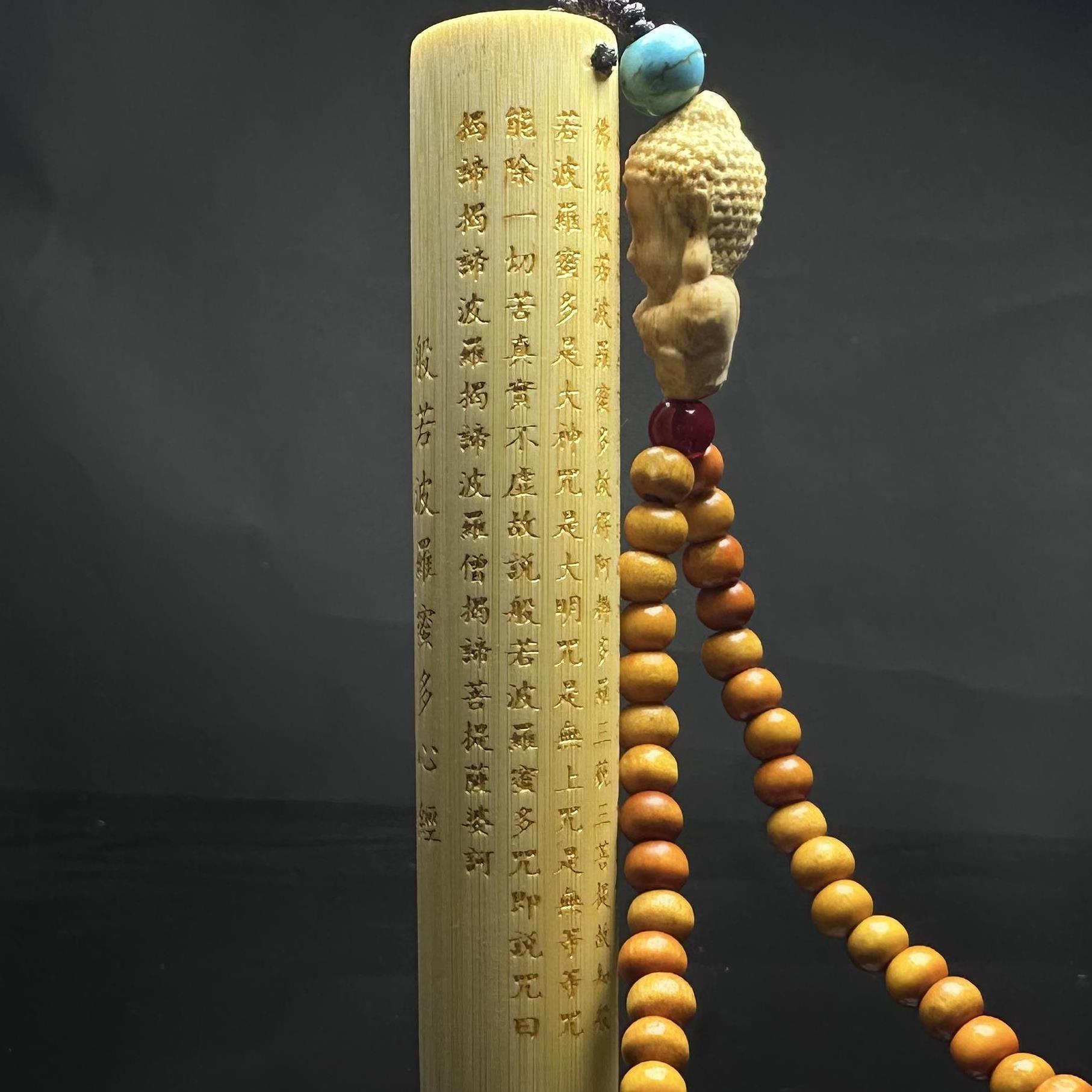 实心玉竹雕刻心经金箍棒手把件文玩竹子把件盘玩实心竹把玩件