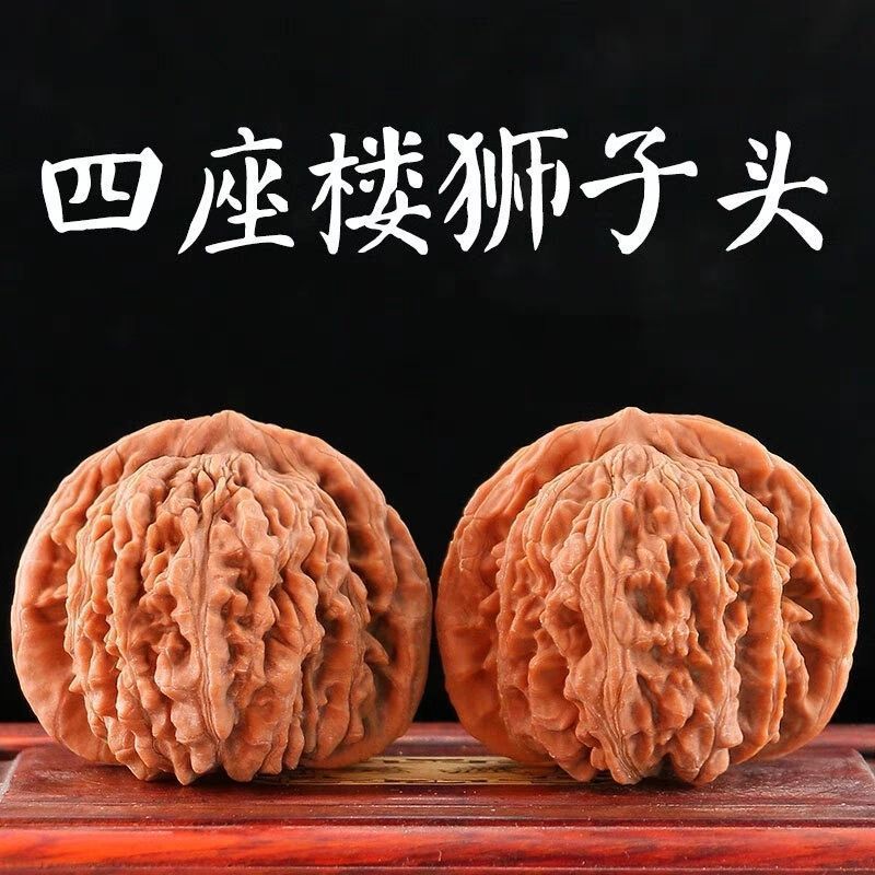 正宗野生文玩桃核把件苹果园四座楼狮子头麒麟纹官帽核桃盘