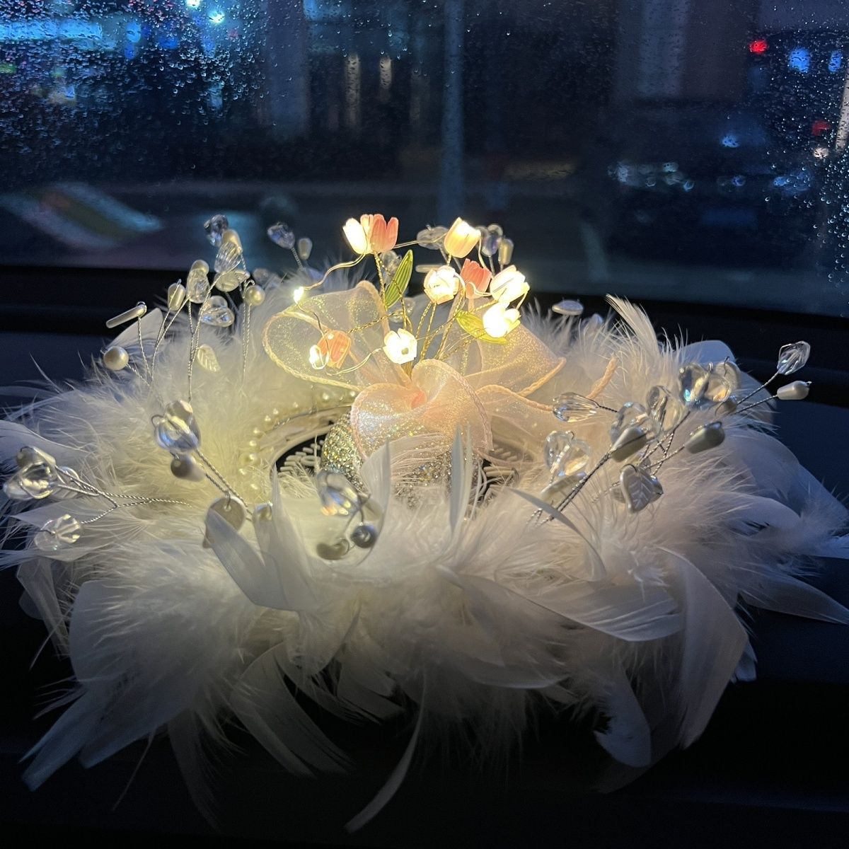 汽车载摆件女神皇冠车内轻奢款中控台小仙女饰品长款羽毛装饰用品