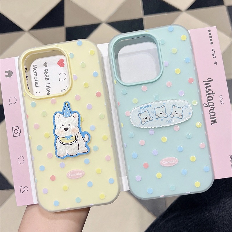 波点立体西高地狗狗适用苹果15ProMax手机壳iphone13全包14二合一
