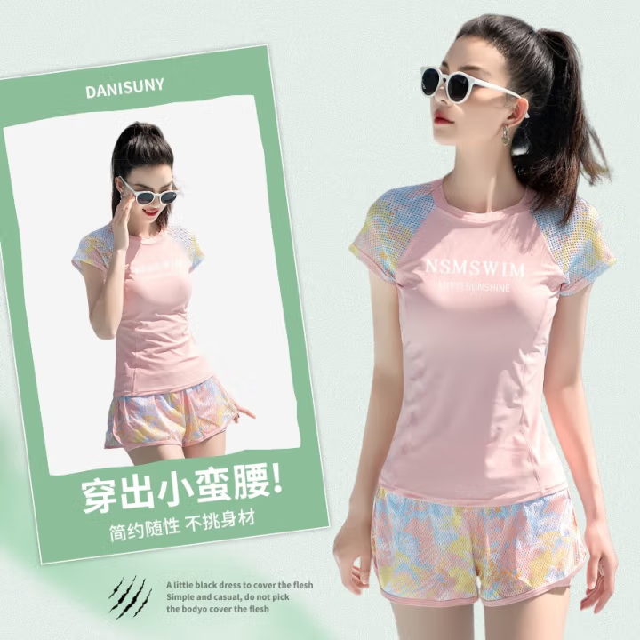 泳衣女泡温泉保守分体遮肚显瘦两件套新款沙滩度假学生泳装