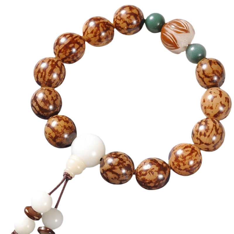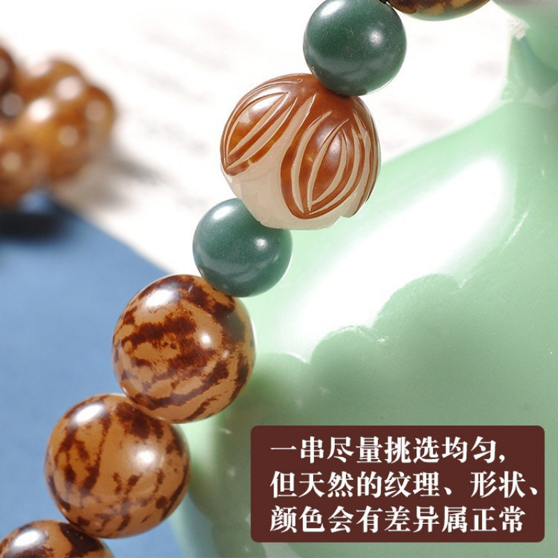 精抛虎斑菩提手串108颗佛珠绿菩提子莲花36手持念珠车挂项链