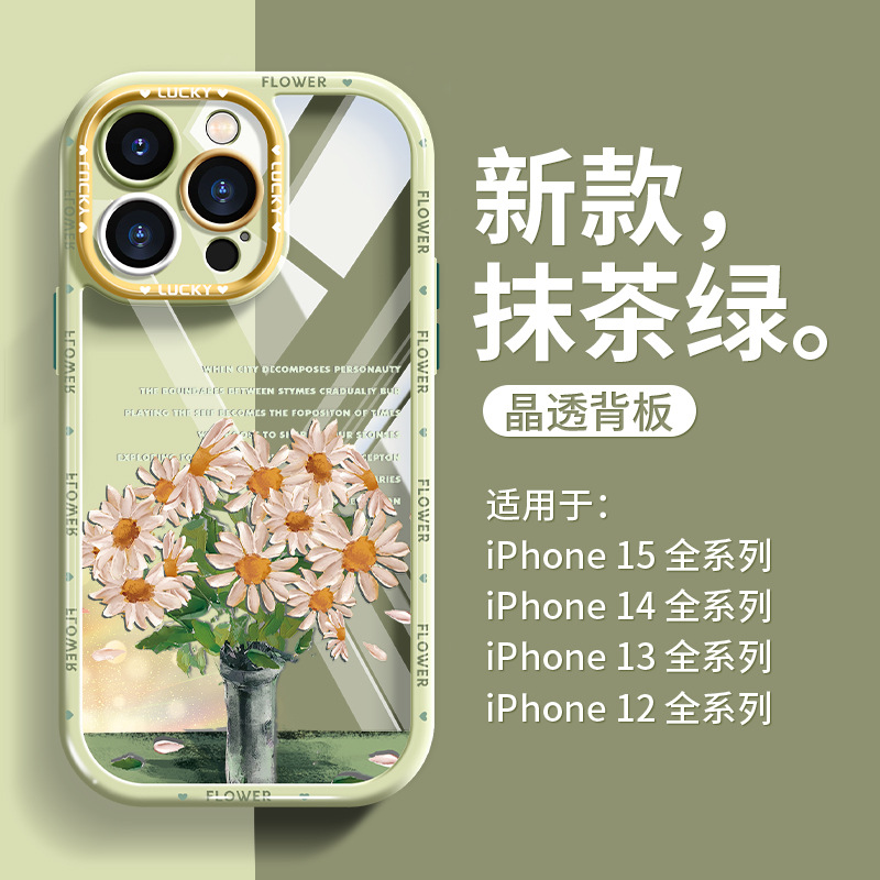 适用于苹果15手机壳透明全包iphone14艺术清新13pro