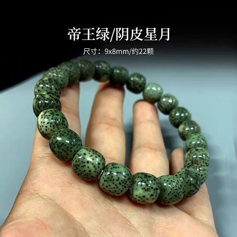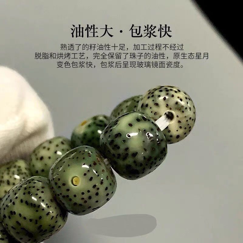 星月菩提子阴皮单圈手串半绿彩云追月干磨偏玄月佛珠