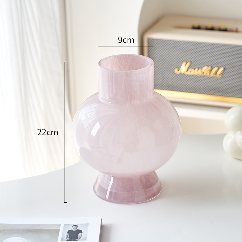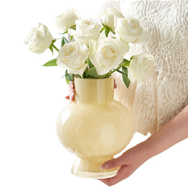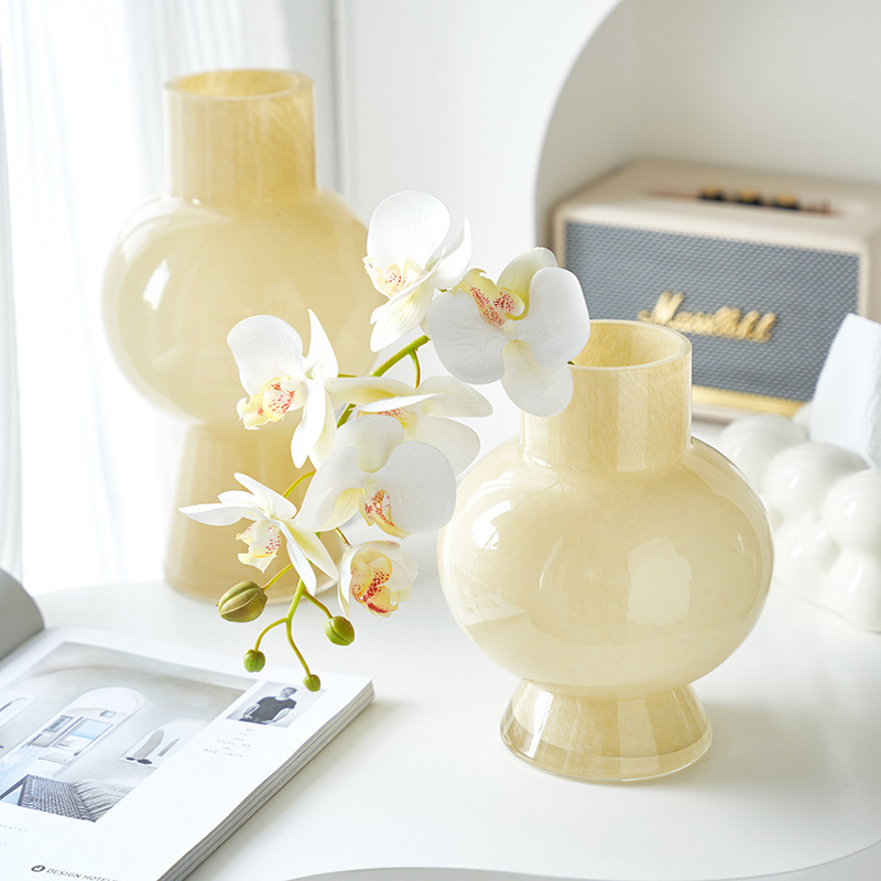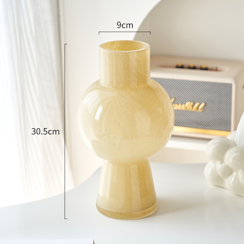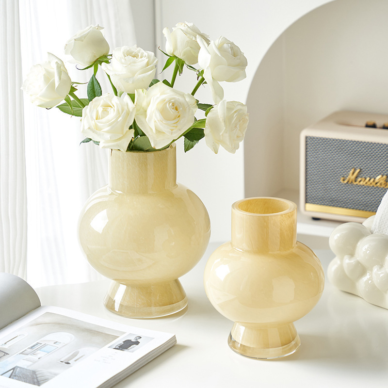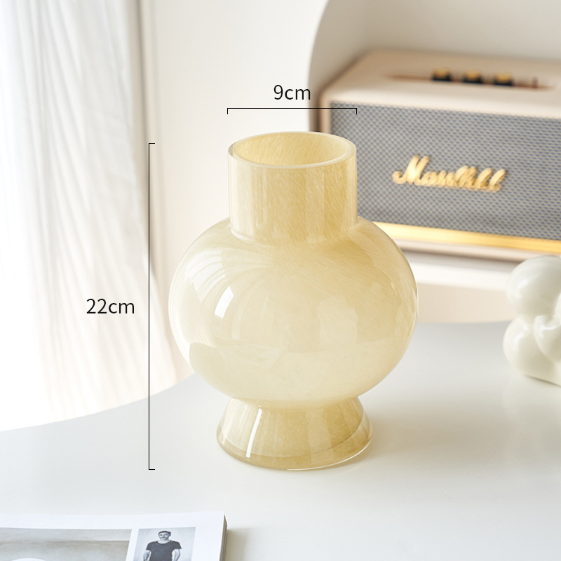 奶油风芬顿中古花瓶高级感琉璃玻璃摆件轻奢插鲜花器法式装饰摆饰