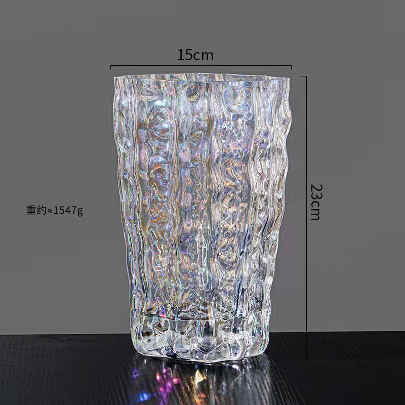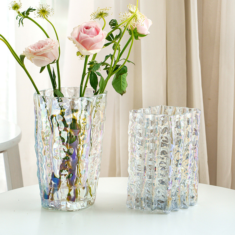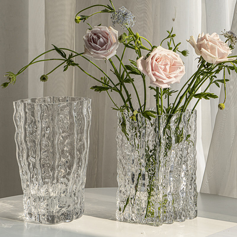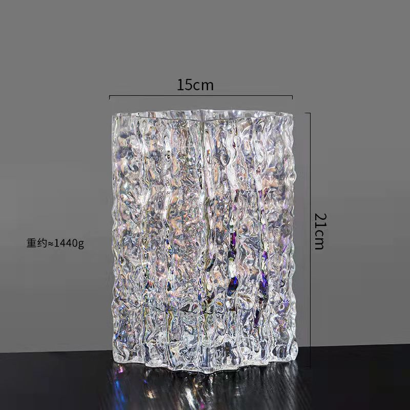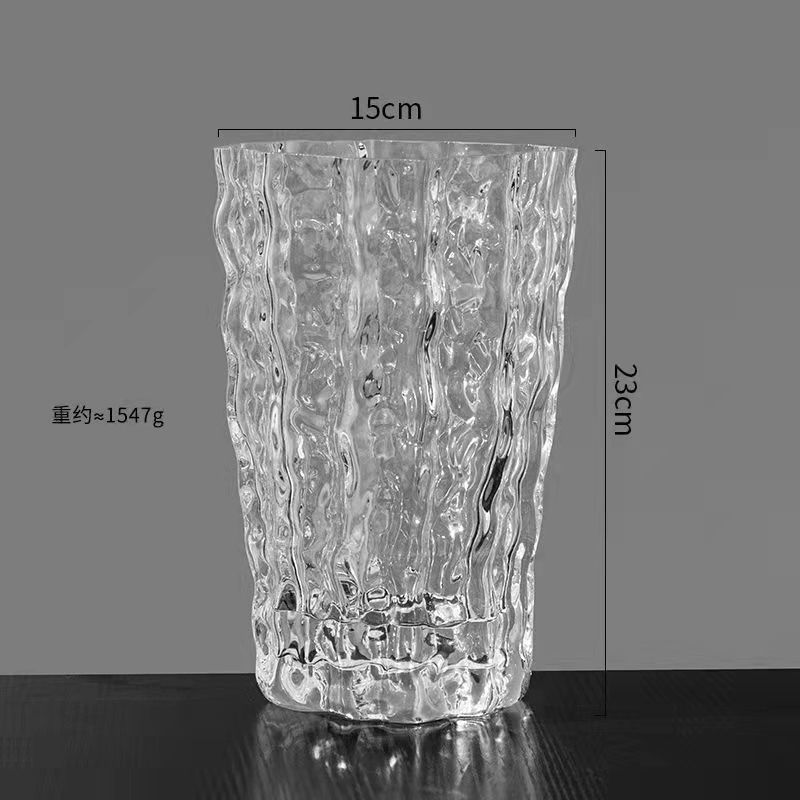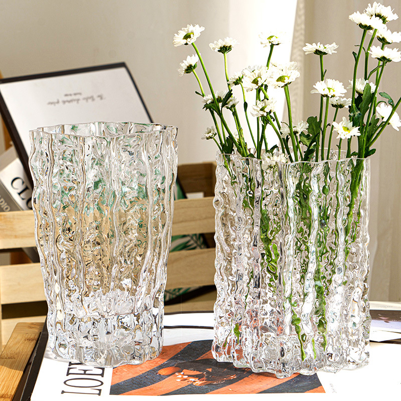 花瓶摆件客厅插花玻璃透明冰川轻奢高级感水养ins大口径网红鲜花