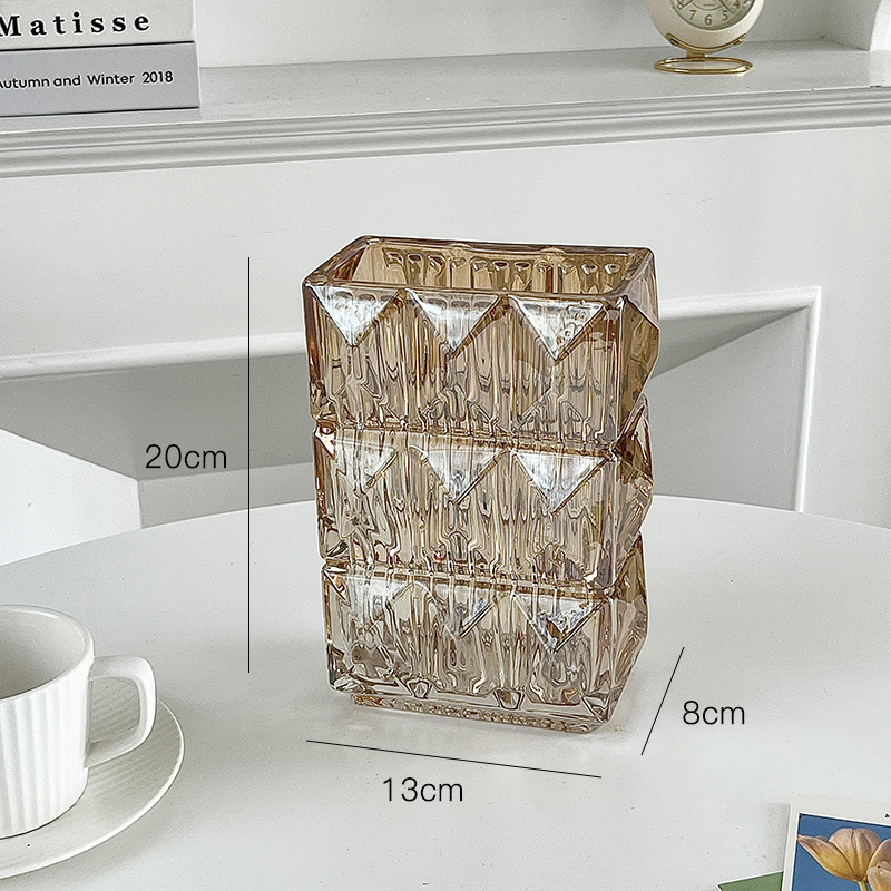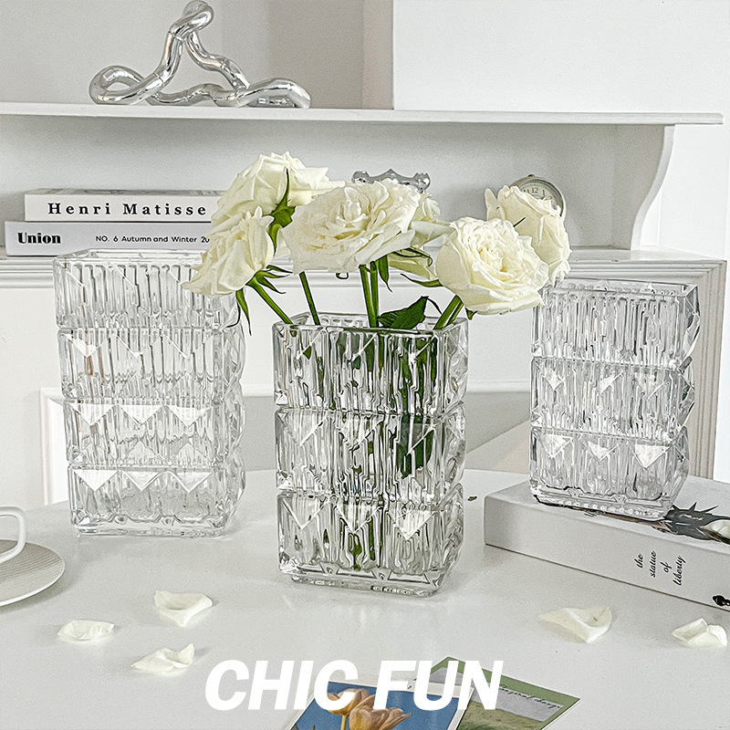 ins风简约水晶玻璃花瓶水培客厅插花透明摆件高级感网红花瓶