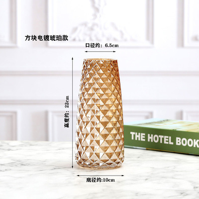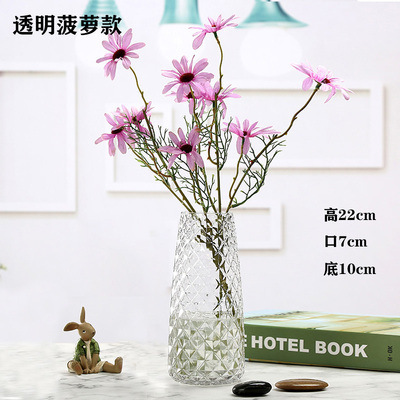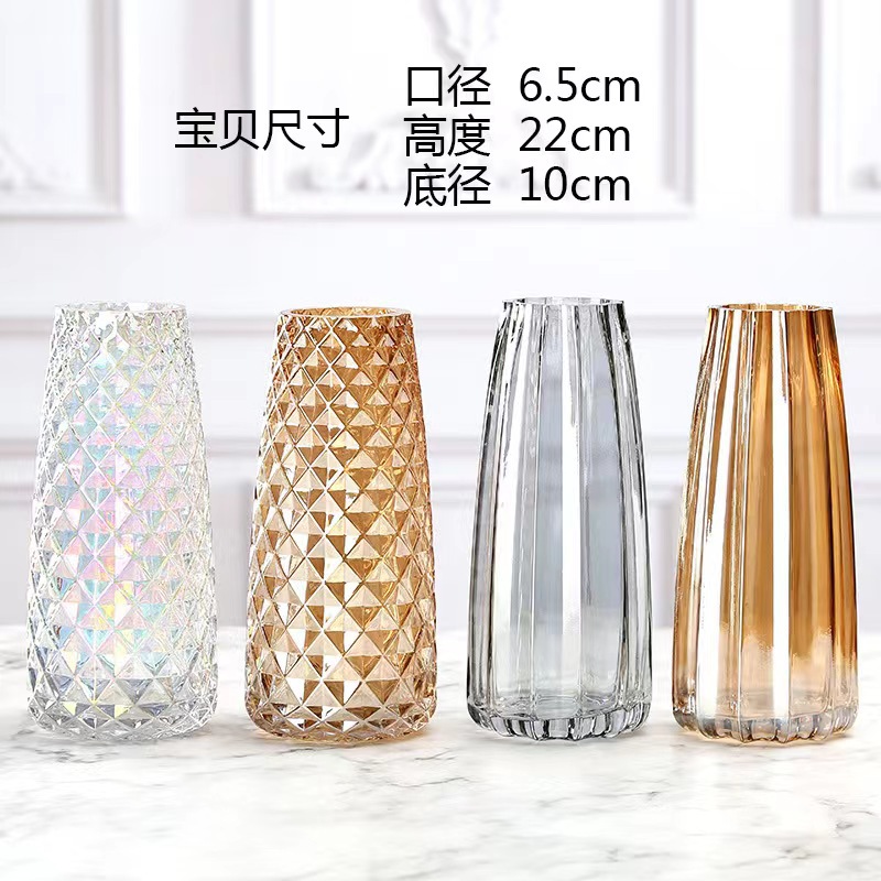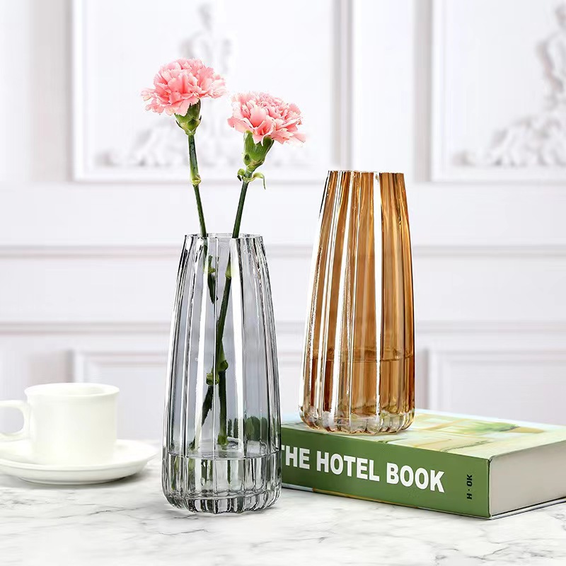 创意外贸竖条玻璃花瓶水养鲜花插花器皿彩色装饰摆件
