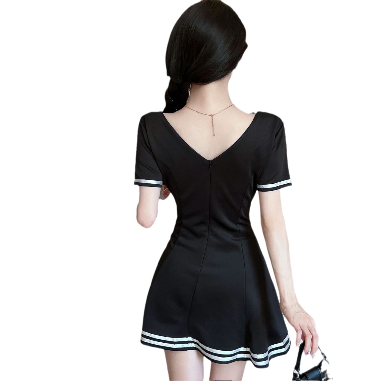 小心机镂空露背连衣裙女夏季新款气质宽松显瘦黑色长裙A字裙