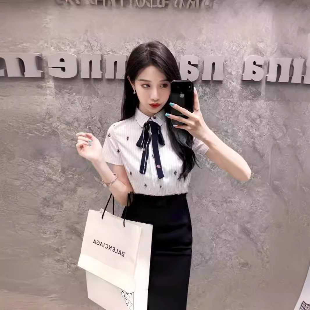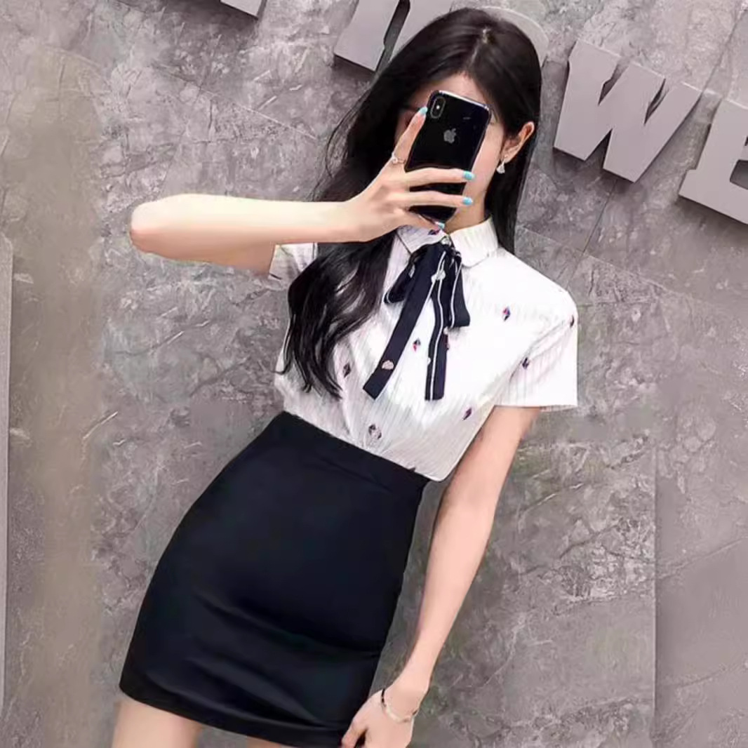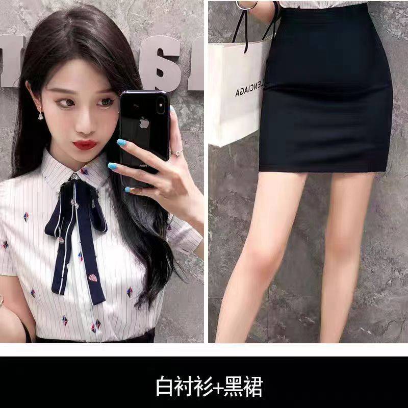 酒店前台职业气质工作装女短袖衬衫职业套裙两件套足浴技师工作服
