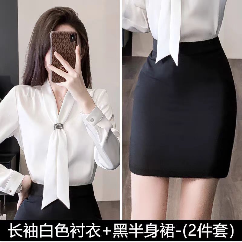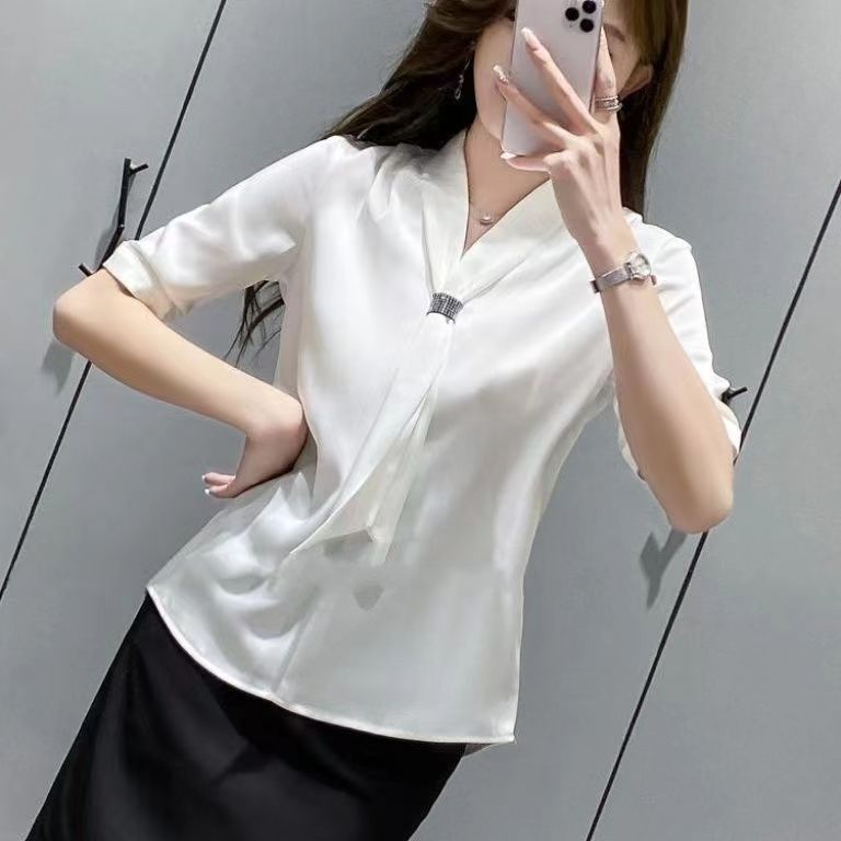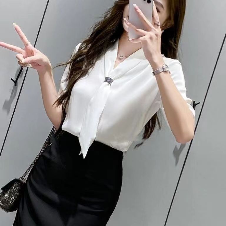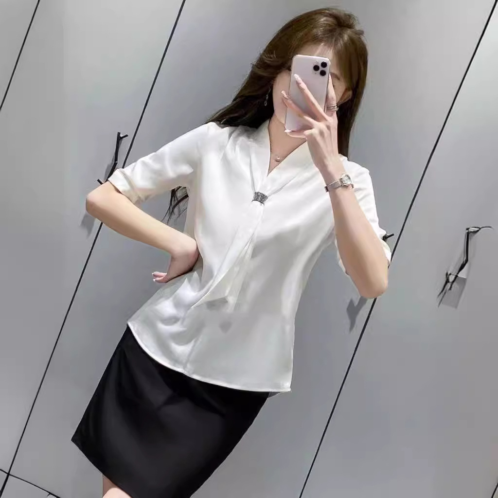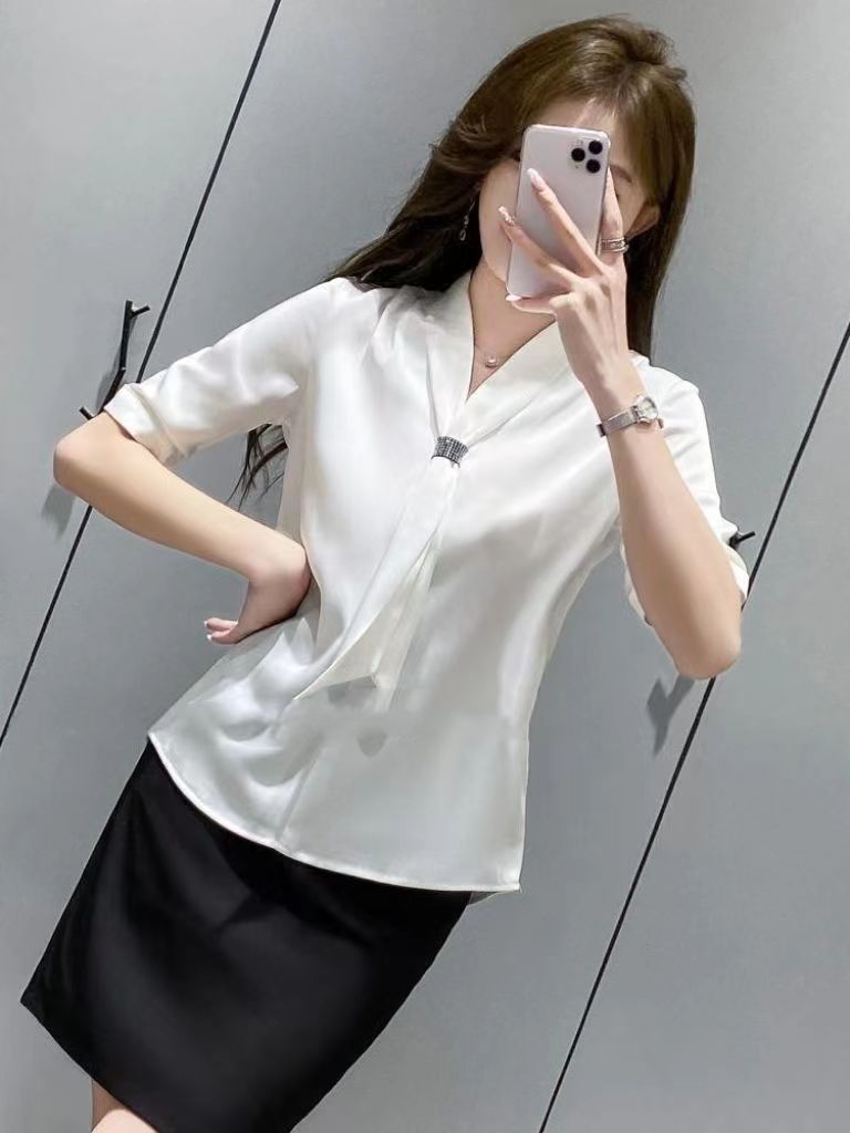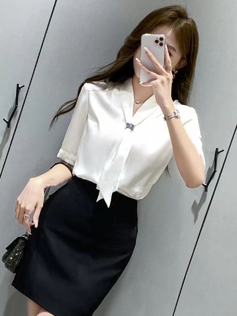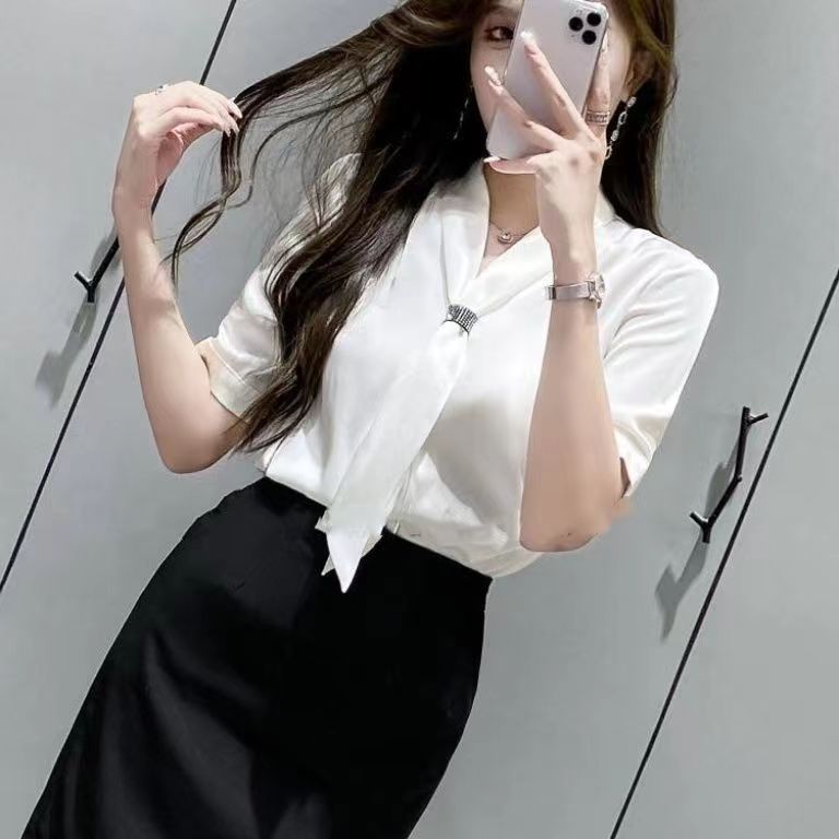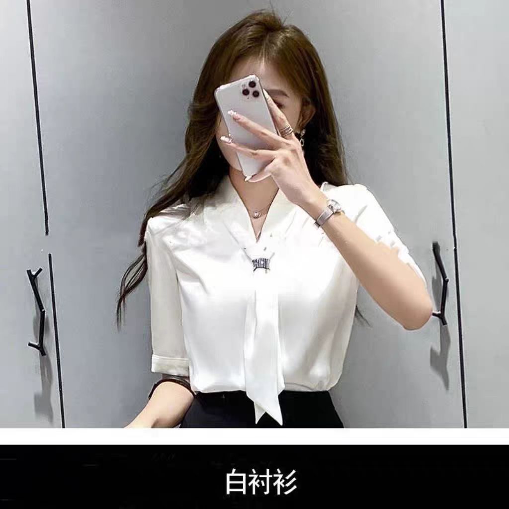 白色衬衫女夏款短袖衬衣新款美容院工作服售楼部高端职业套裙